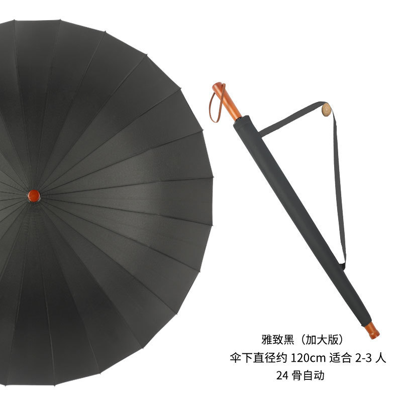 • 나무 손잡이 자동-24 뼈 큰 우산-블랙