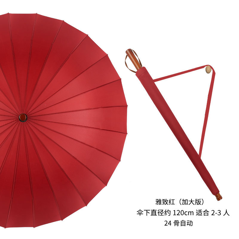 • 나무 손잡이 자동-24 뼈 큰 우산-버건디