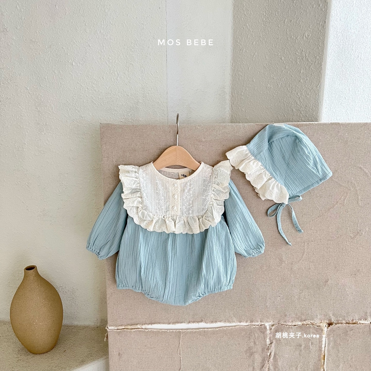 신생아 여아 한국식 레이스 토끼 옷 투피스 인 삼각형 등반 세트 모자와 방귀스토어 가기