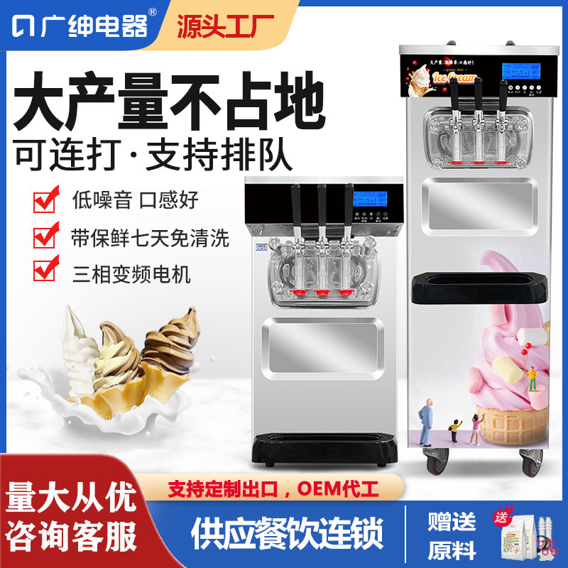 광센 전기 아이스크림 기계 상업용 자동 대형 출력 음소거 우유 차 장비 소프트 아이스크림 기계 수직스토어 가기