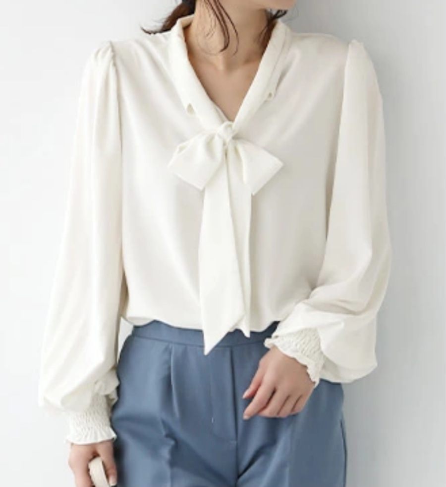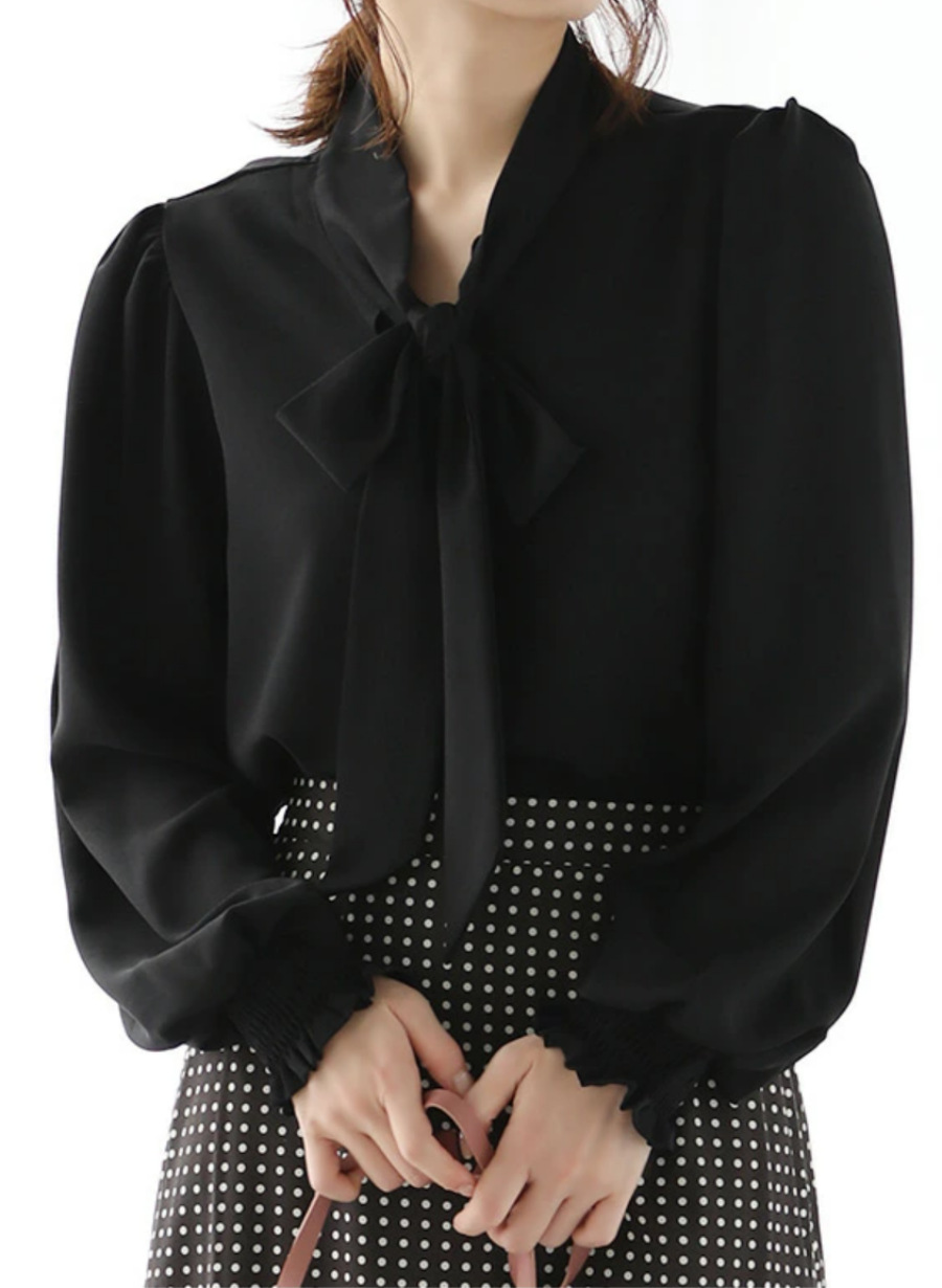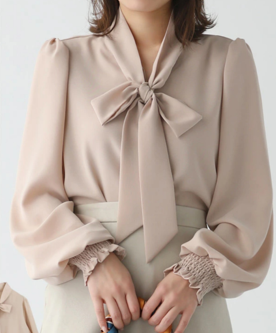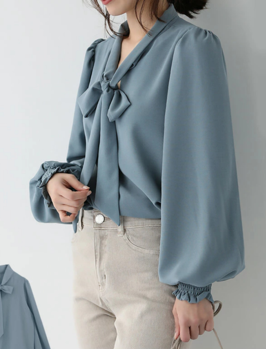 2024년 일본 및 한국 가을 솔리드 컬러 루즈 레이스업 셔츠 랜턴 슬리브 탑 여성용 실제 사진