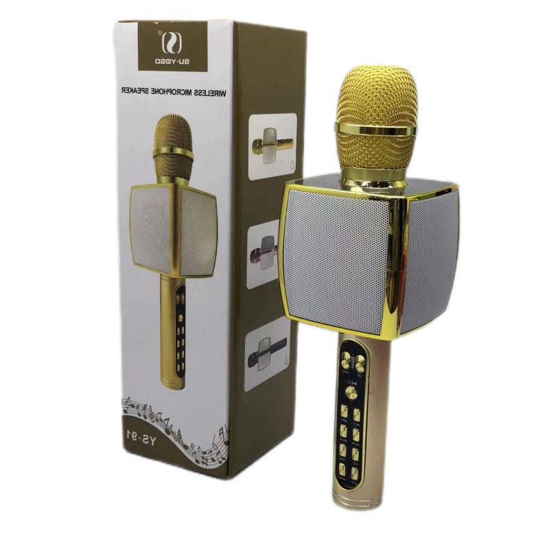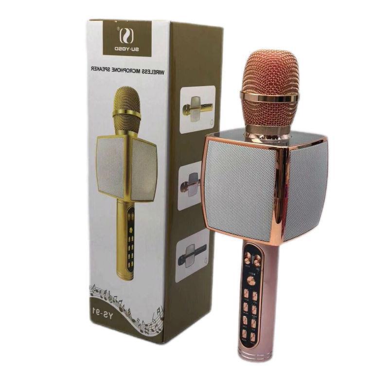| 支持苹果和安卓系统各种智能手机。 材质:ABS塑胶+铝合金材质。 | 1.带蓝牙功能,可以连接手机唱吧、全民K歌等软件进行K歌。 2.有音箱功能,可以连接手机直接播放音乐。 3.话筒功能,可以当作扩音器。 4.双喇叭+震膜。 5.可以插TF卡或USB播放音乐。 6.有自带录音和播放录音功能。 7.带特效掌声功能。 8.支持收音机功能。 | 产品尺寸:11.5*8.5*28.5 cm 彩盒尺寸:9*9*29cm 单箱毛重:25.6kg |