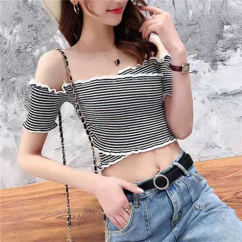 오프 숄더 크로스 디자인 얇은 나무 귀 섹시 핫 걸 오프 숄더 반팔 스웨터 여성 봄과 가을 여성 bm스토어 가기