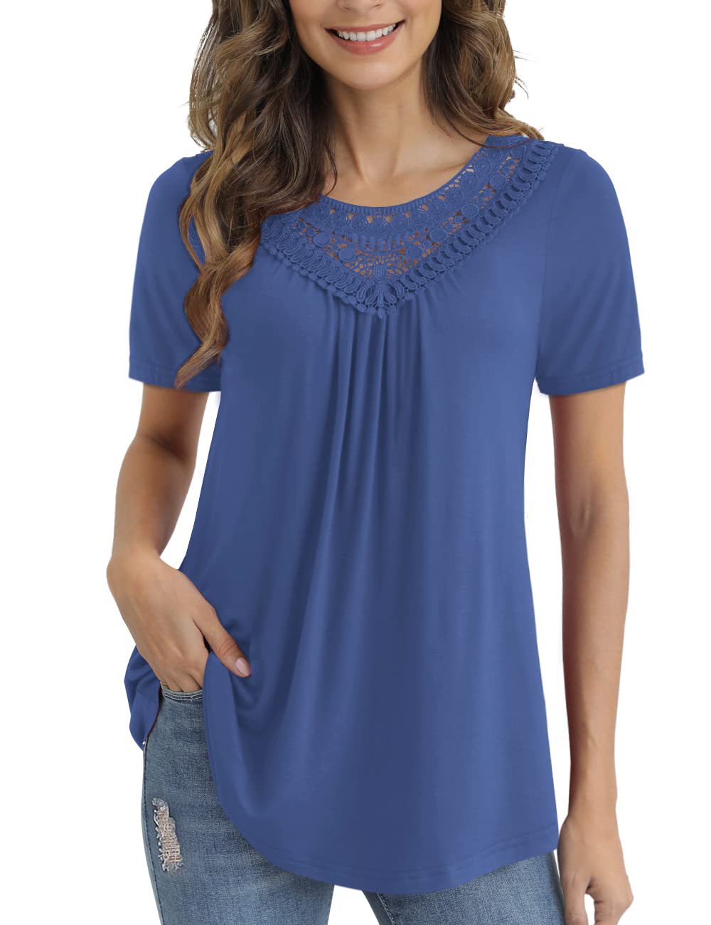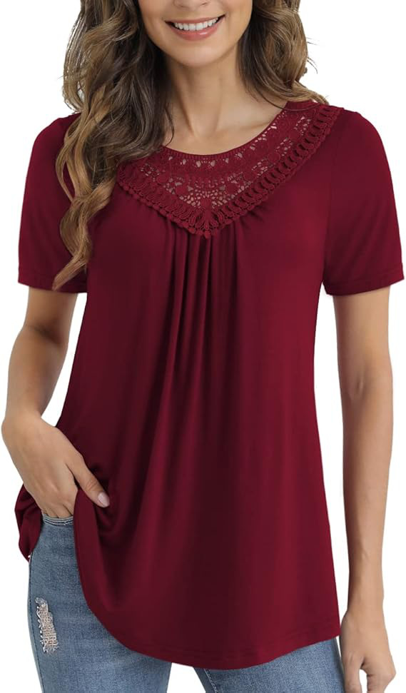 아마존 크로스 보더 여성 플러스 사이즈 여름 탑 짧은 소매 레이스 주름 셔츠 벨트 최고 M-4XL