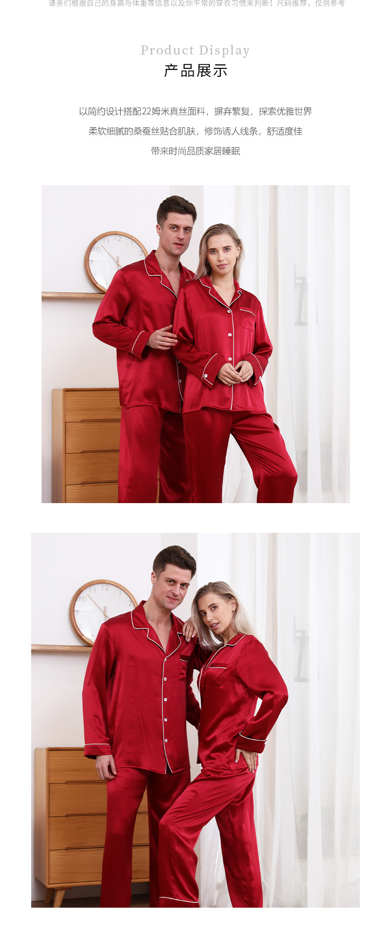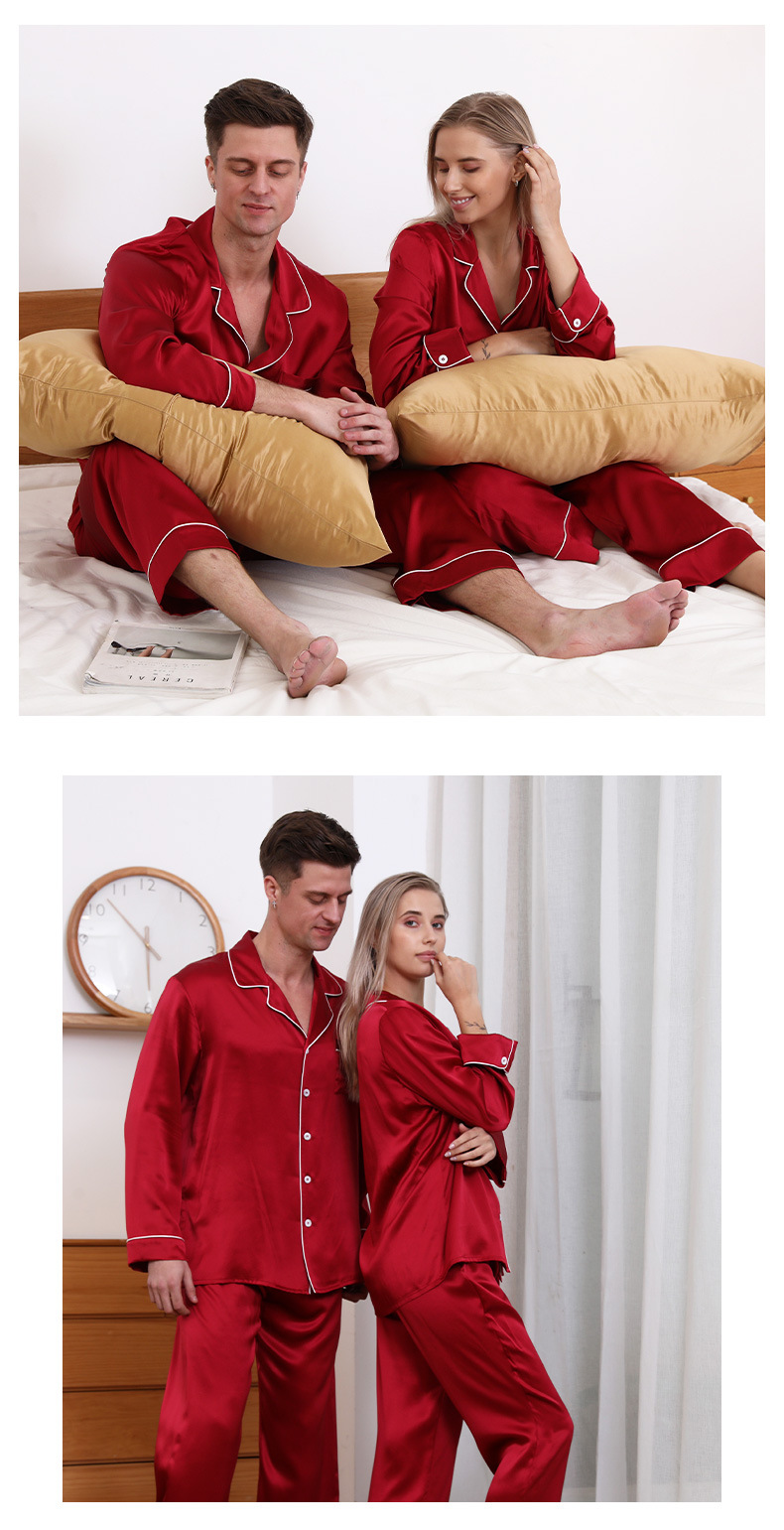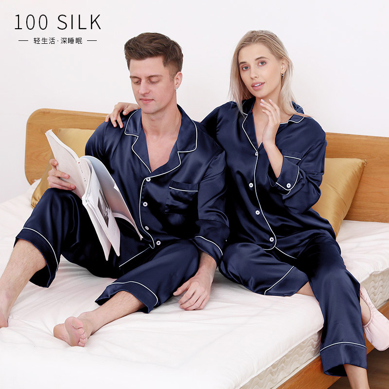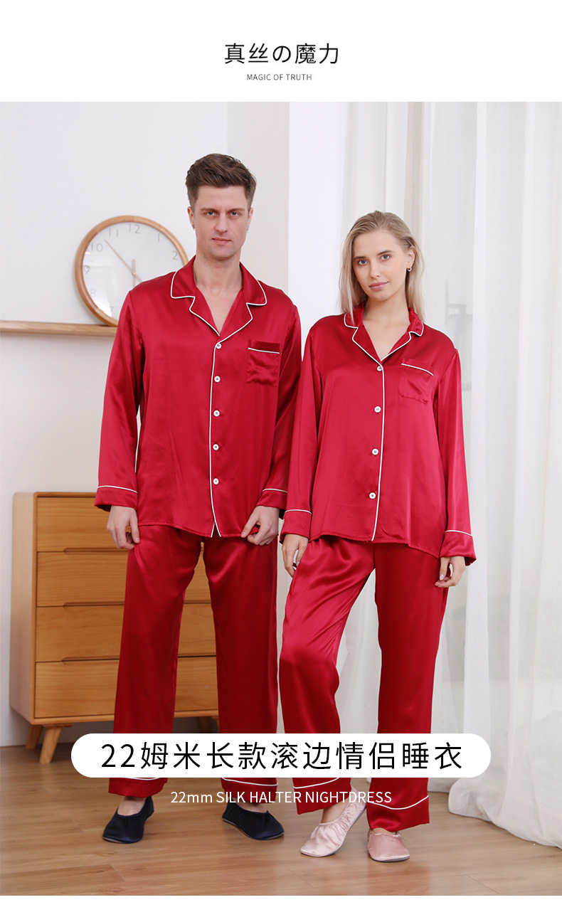 크로스 보더 새로운 22 mm 롱 롤 실크 잠옷 커플 남성 및 여성 가정복 100 뽕나무 실크 V-넥 의류스토어 가기