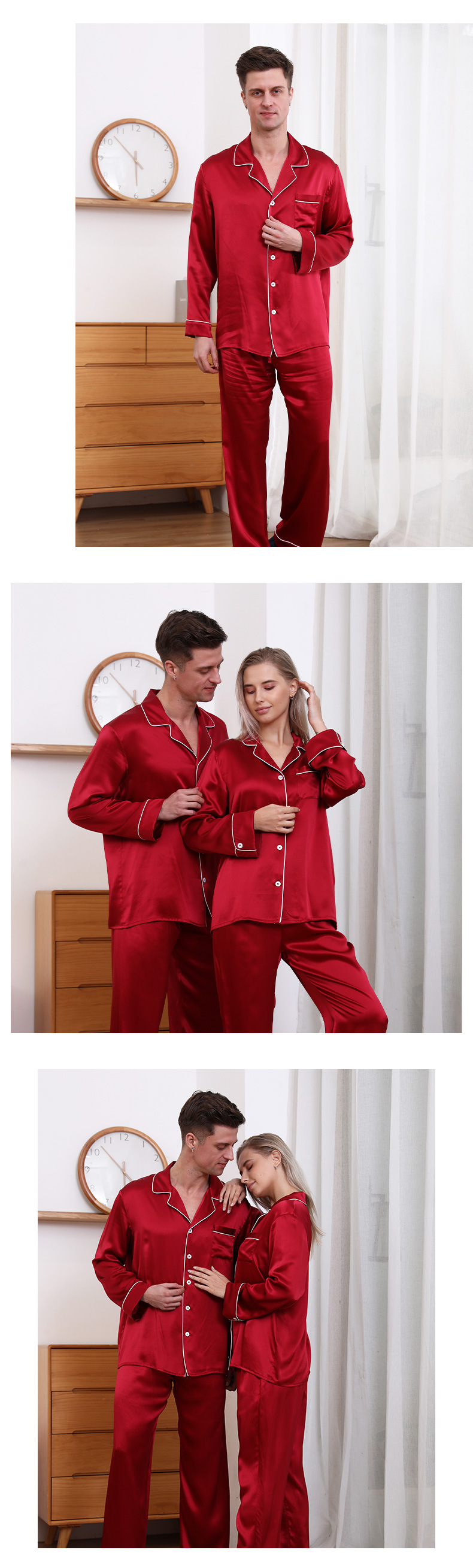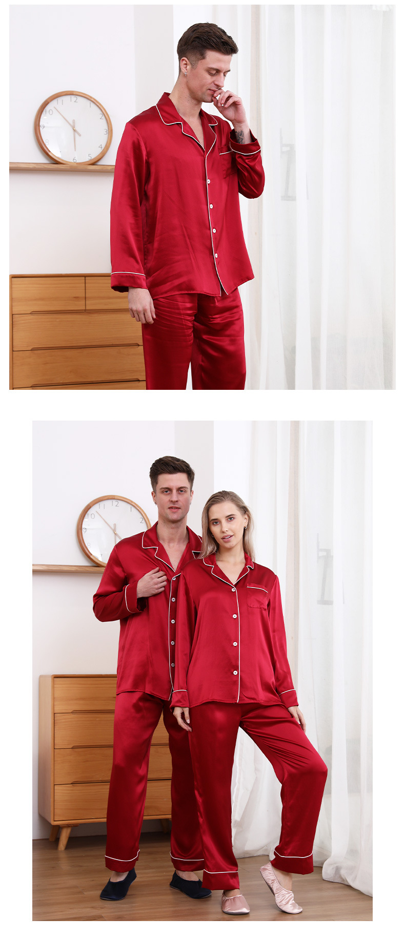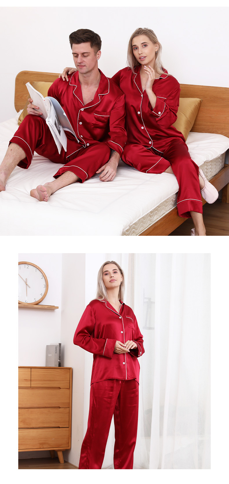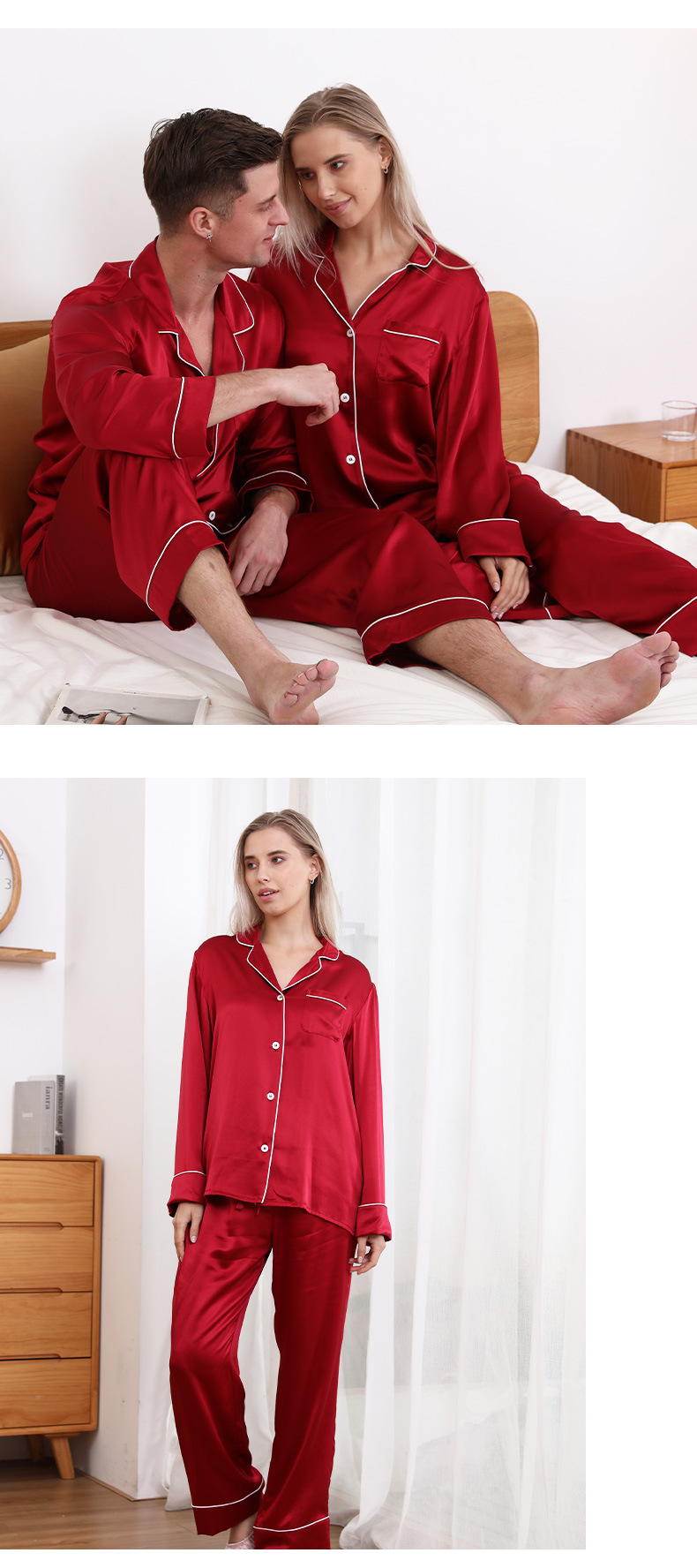 크로스 보더 새로운 22 mm 롱 롤 실크 잠옷 커플 남성 및 여성 가정복 100 뽕나무 실크 V-넥 의류스토어 가기