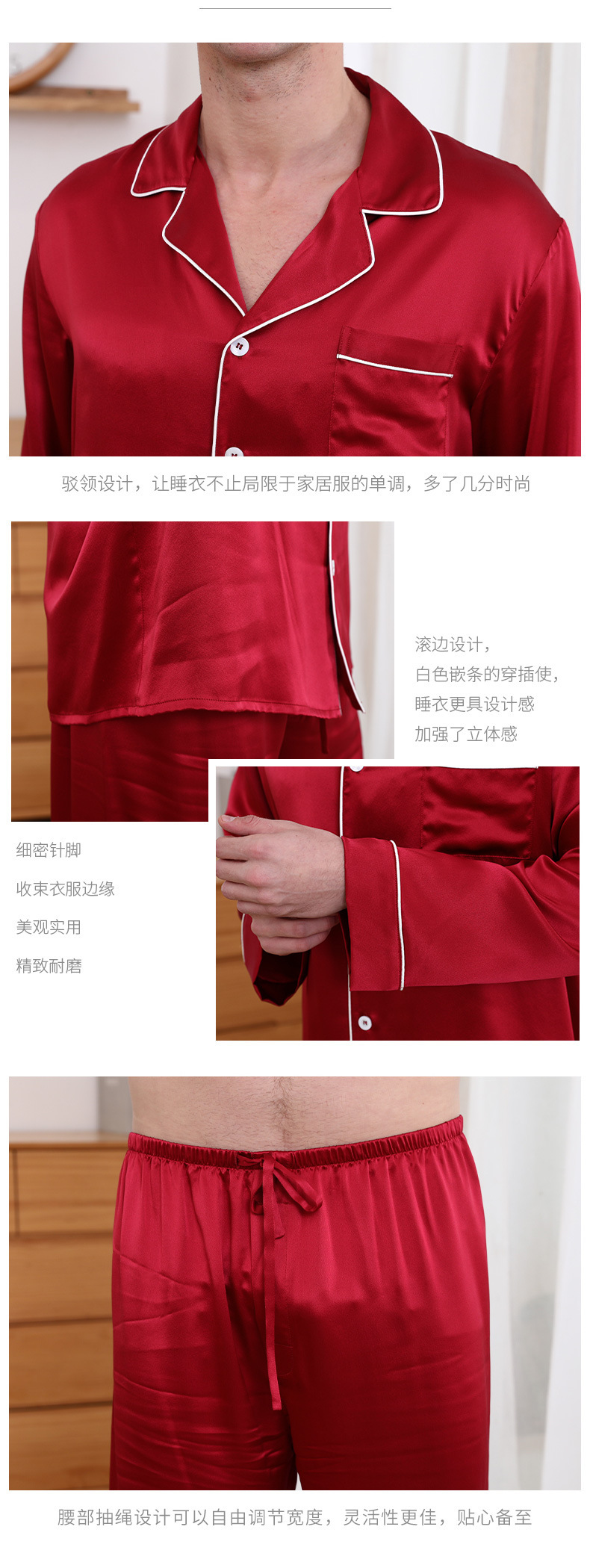 크로스 보더 새로운 22 mm 롱 롤 실크 잠옷 커플 남성 및 여성 가정복 100 뽕나무 실크 V-넥 의류