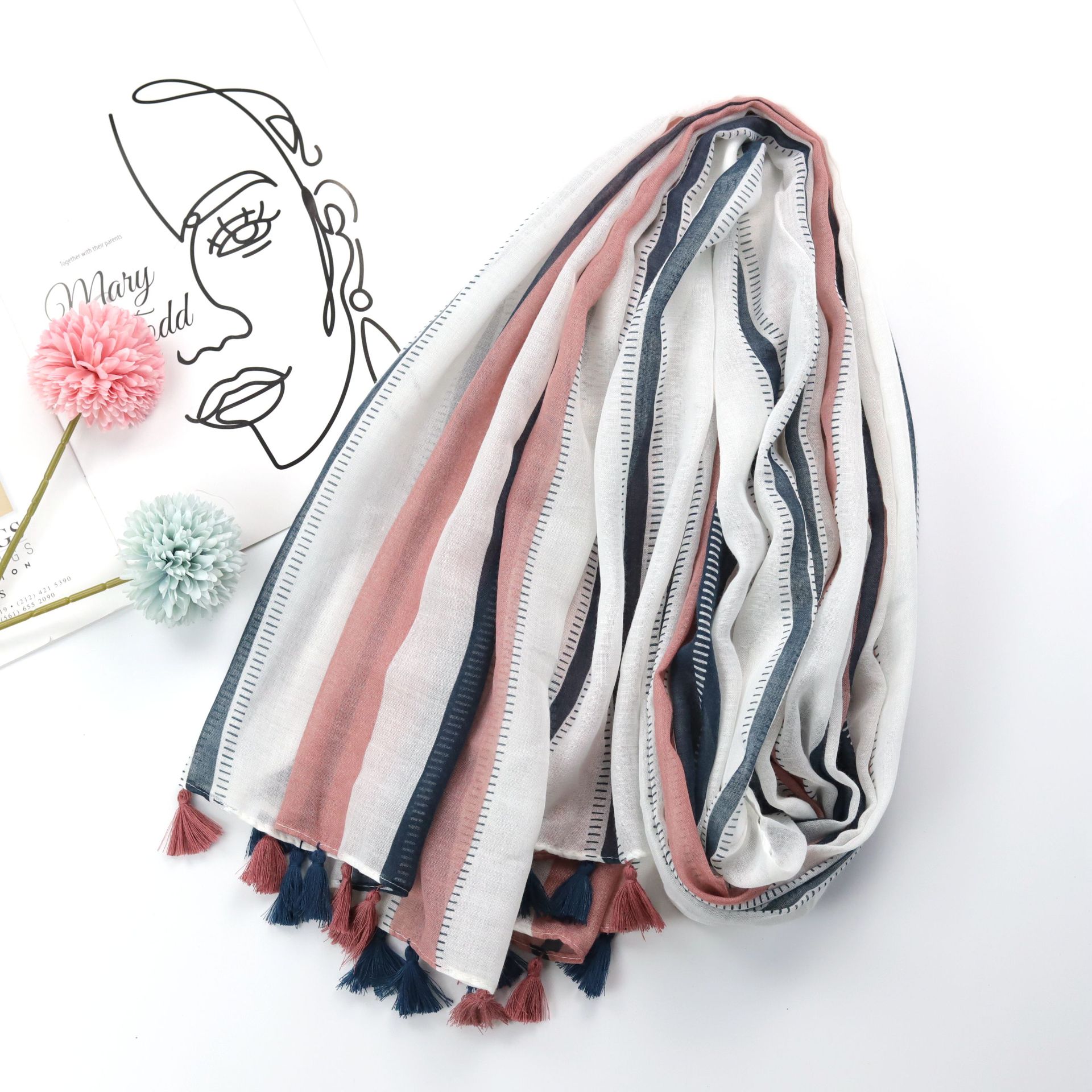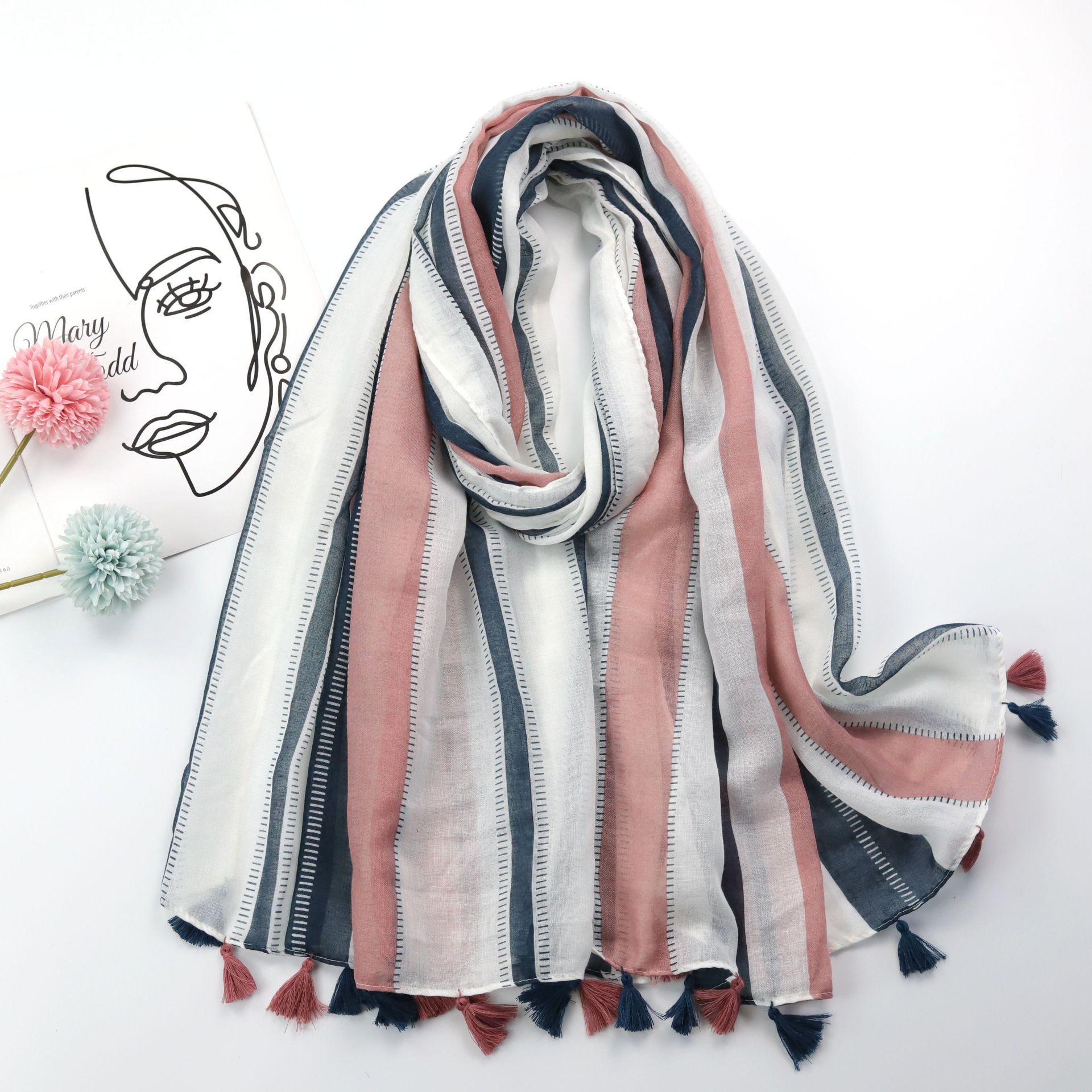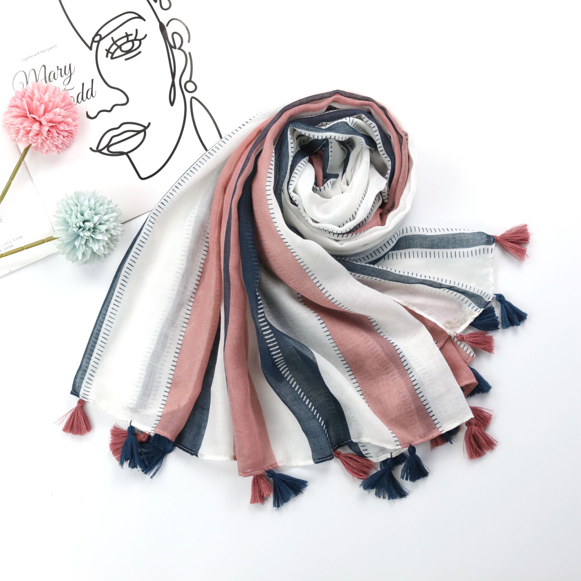 크로스 보더 봄과 여름 크로스 보더 간단한 신선한 스트라이프 인쇄 긴 스카프 암호화 발리 원사 실크 스카프 여성 여행 자외선 차단제 스카프스토어 가기