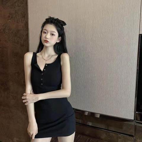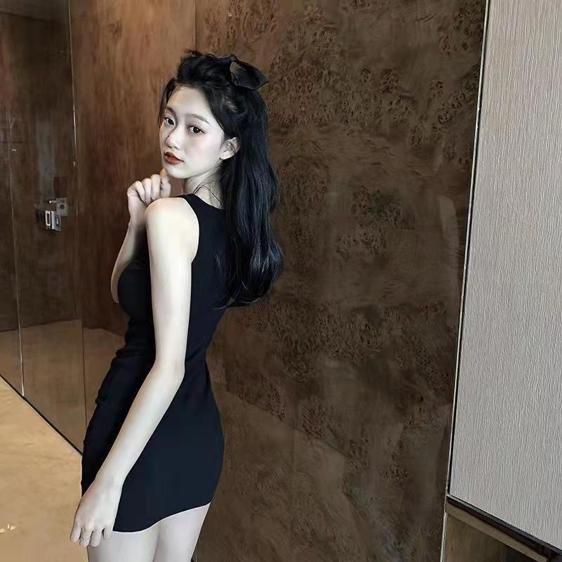 원피스 여자의 여름 새로운 모든 매치 심플 핫 걸 슬립 원피스 단색 슬림핏 허리 힙 스커트