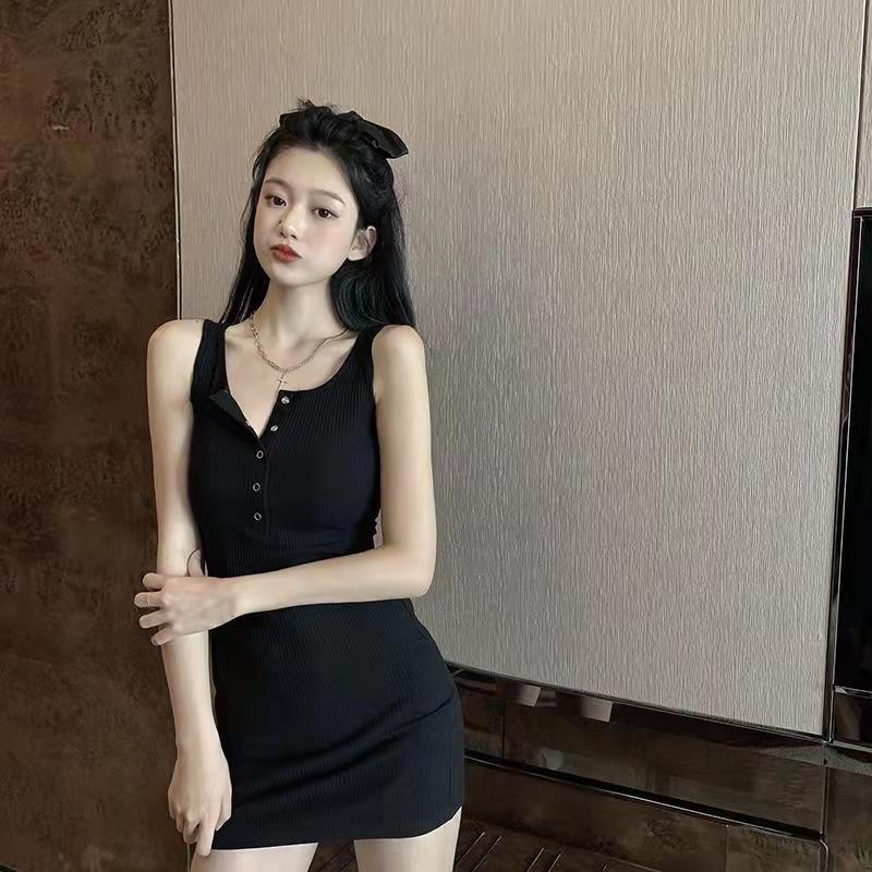 원피스 여자의 여름 새로운 모든 매치 심플 핫 걸 슬립 원피스 단색 슬림핏 허리 힙 스커트스토어 가기