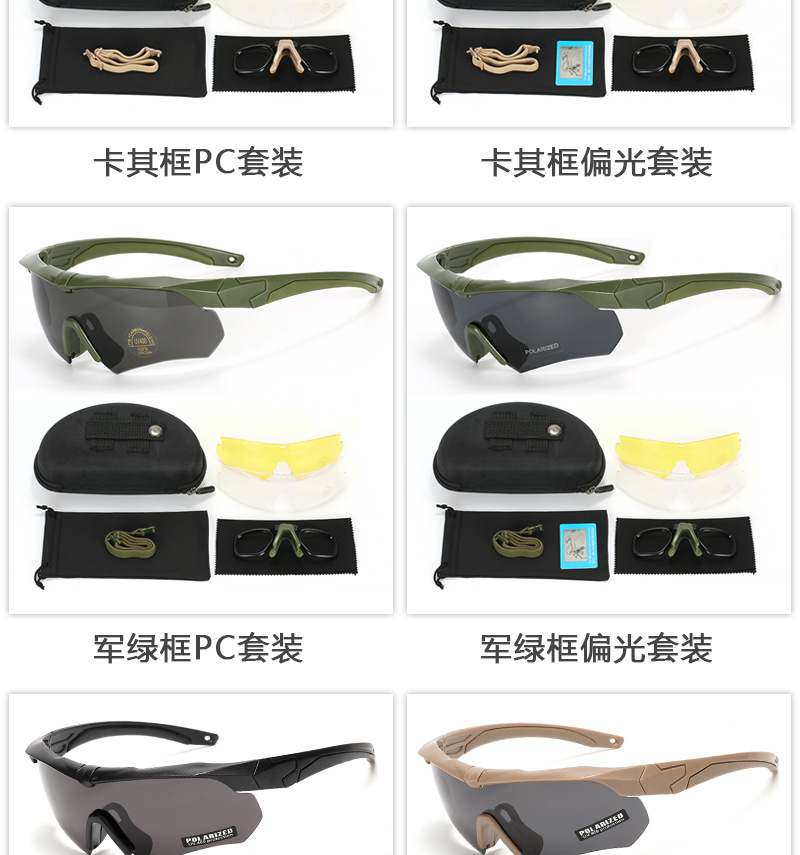 • 카키 프레임 편광 6개 렌즈 세트