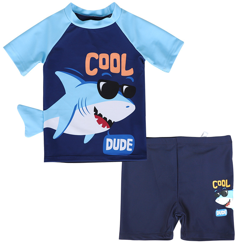 새로운 일랑 어린이 수영복 소년 분할 태양 방지 속건 어린이 수영복 상어 모양 서퍼 세트