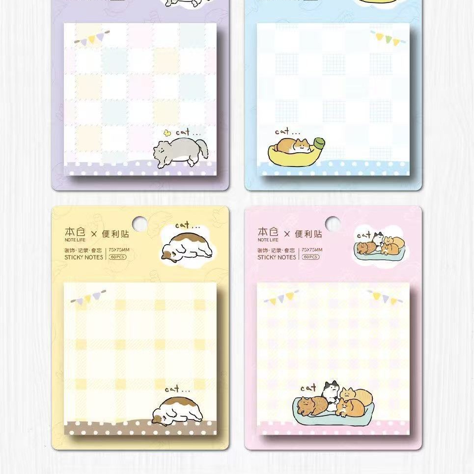 • 사각 포스트잇 - 귀여운 고양이 (1세트, 4권, 1박스, 24권)