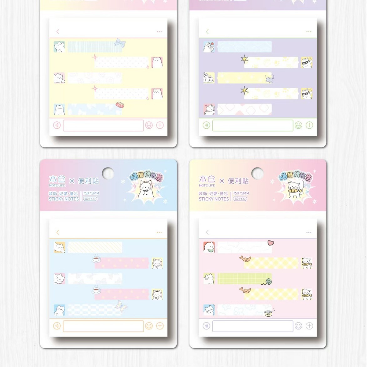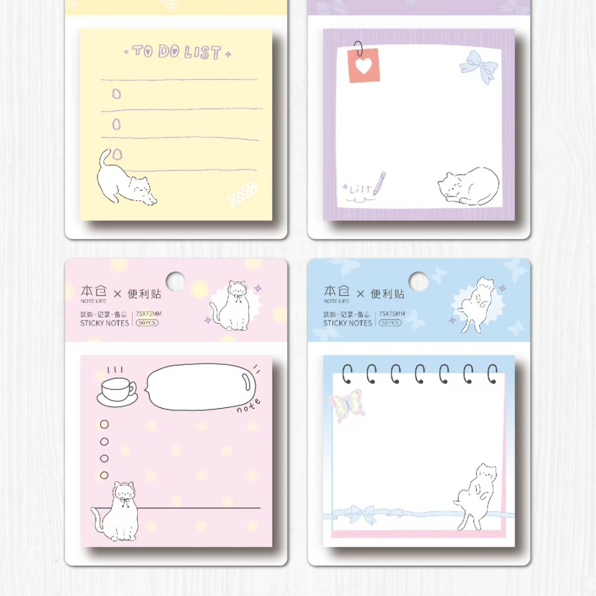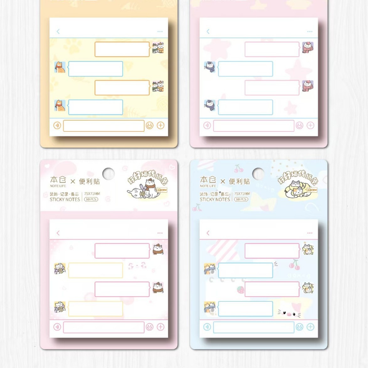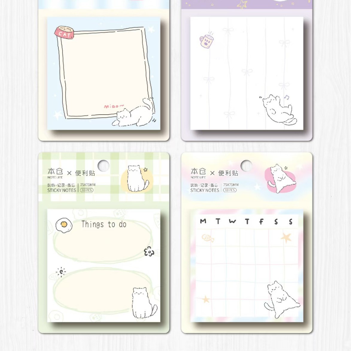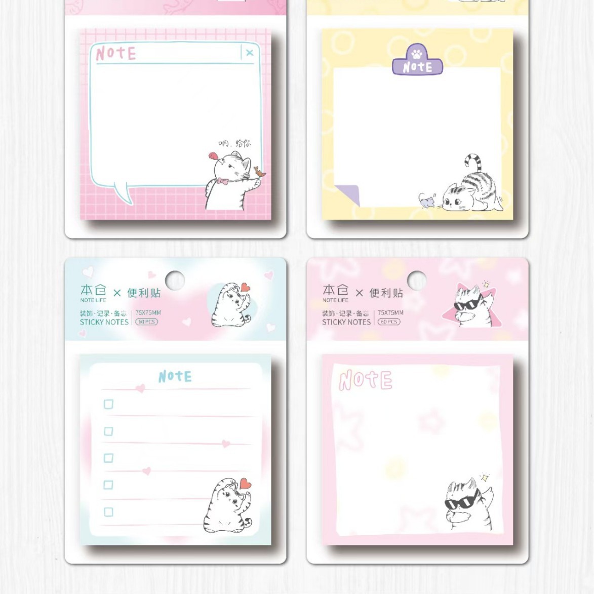 • 정사각형 포스트잇 - 고양이 재미 (1세트 4권 1박스 24권)