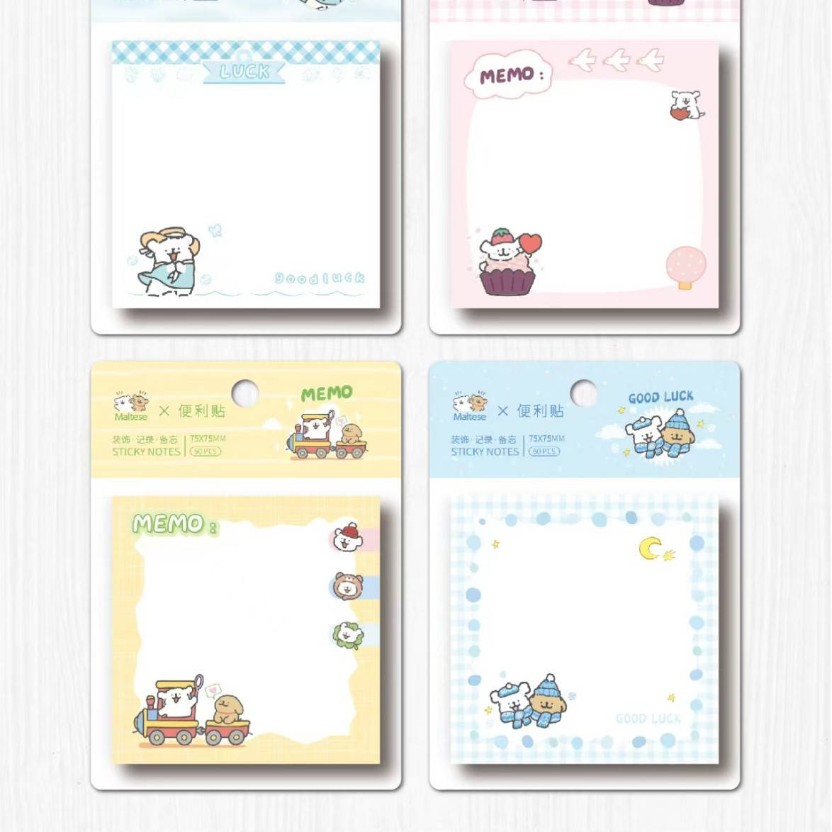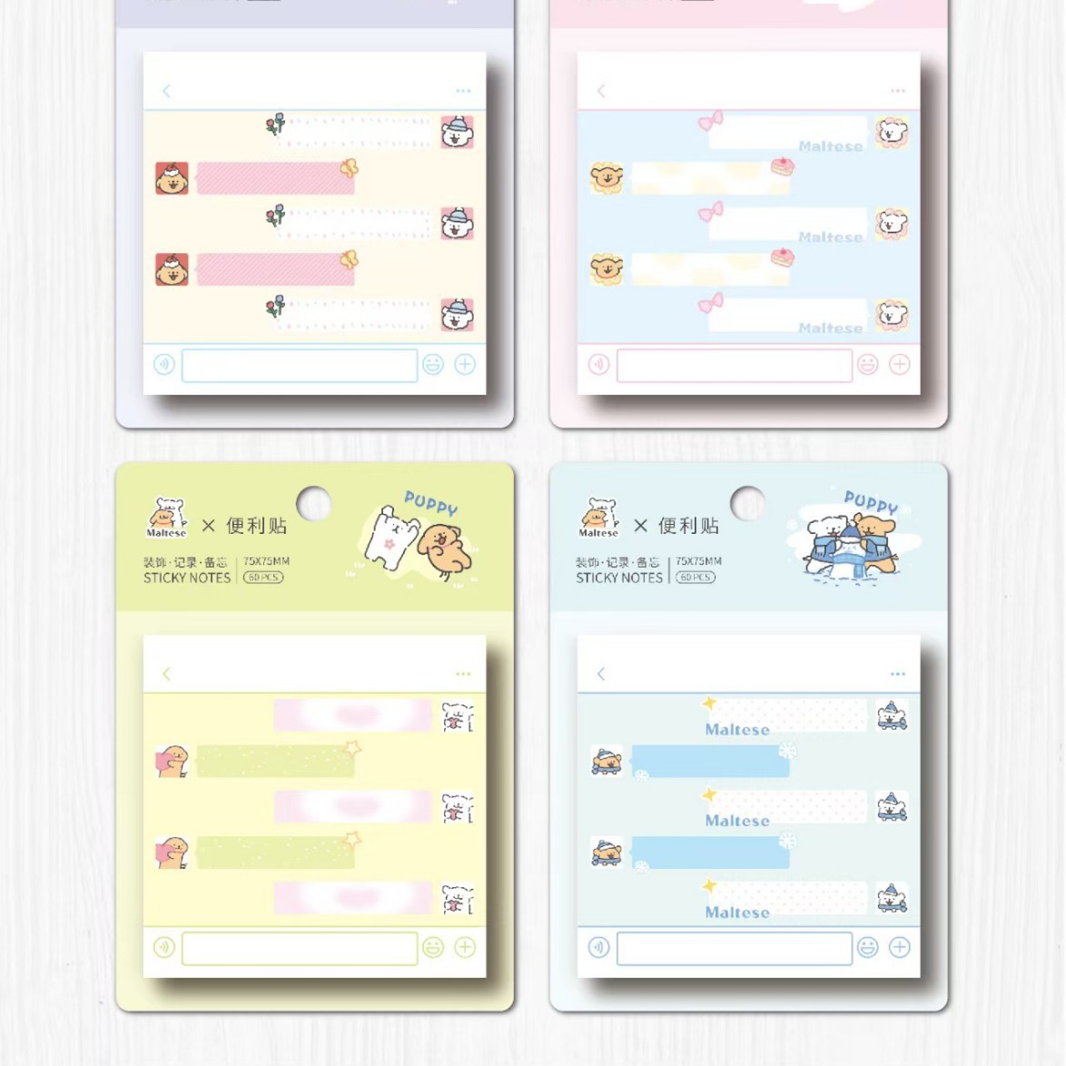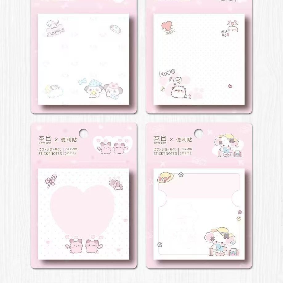 • 정사각형 스티커 메모 - 귀여운 강아지 메모지 (1세트 4권 1박스 24권)
