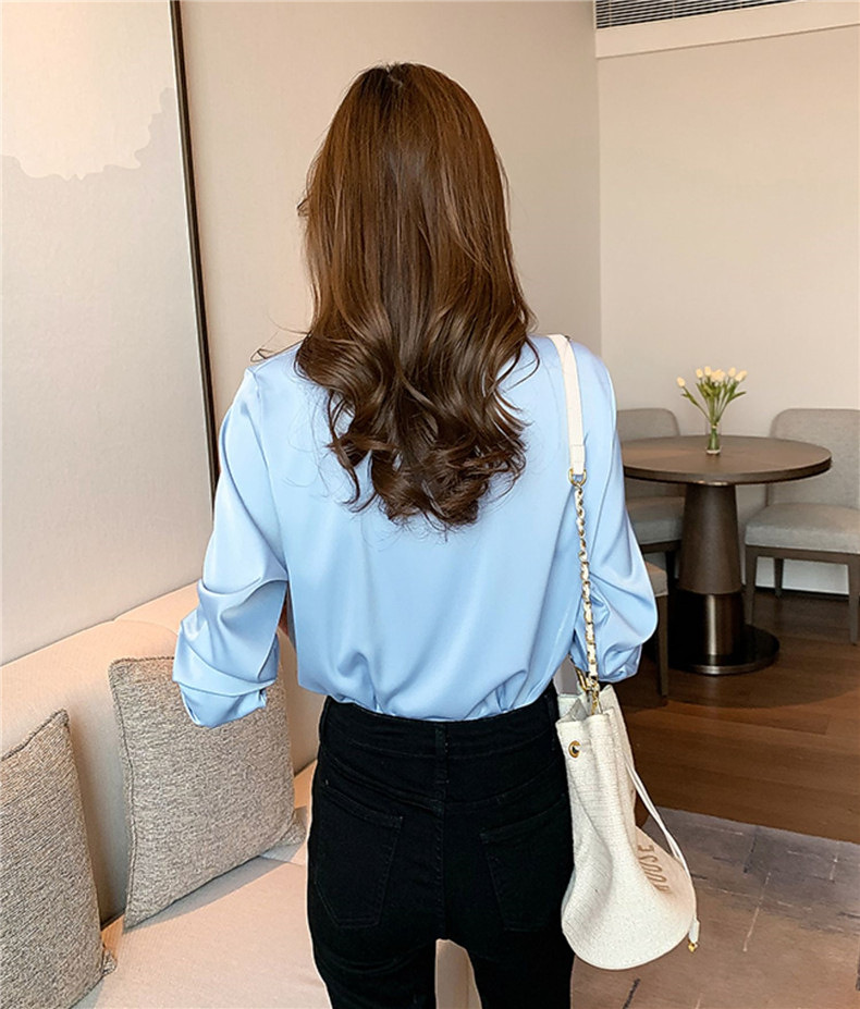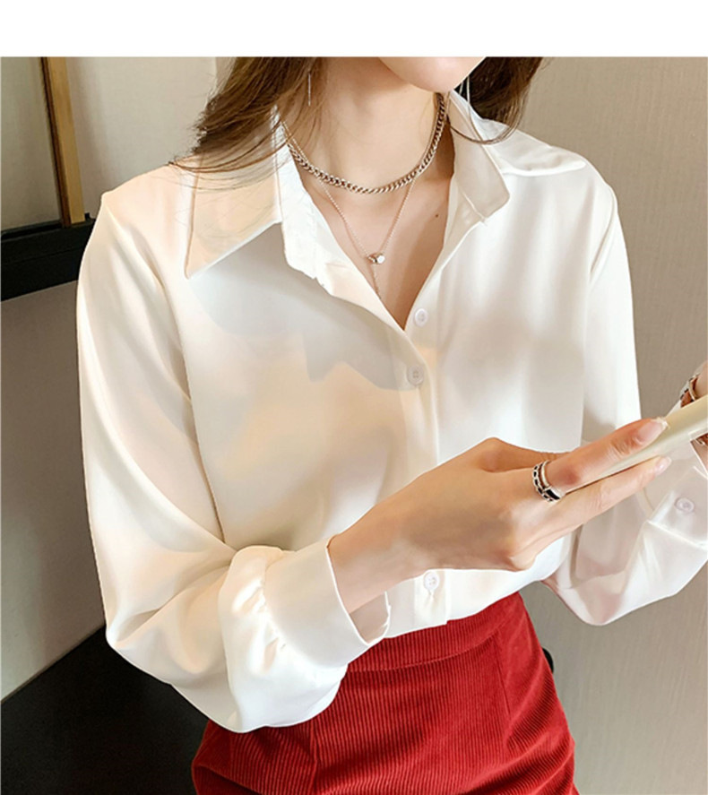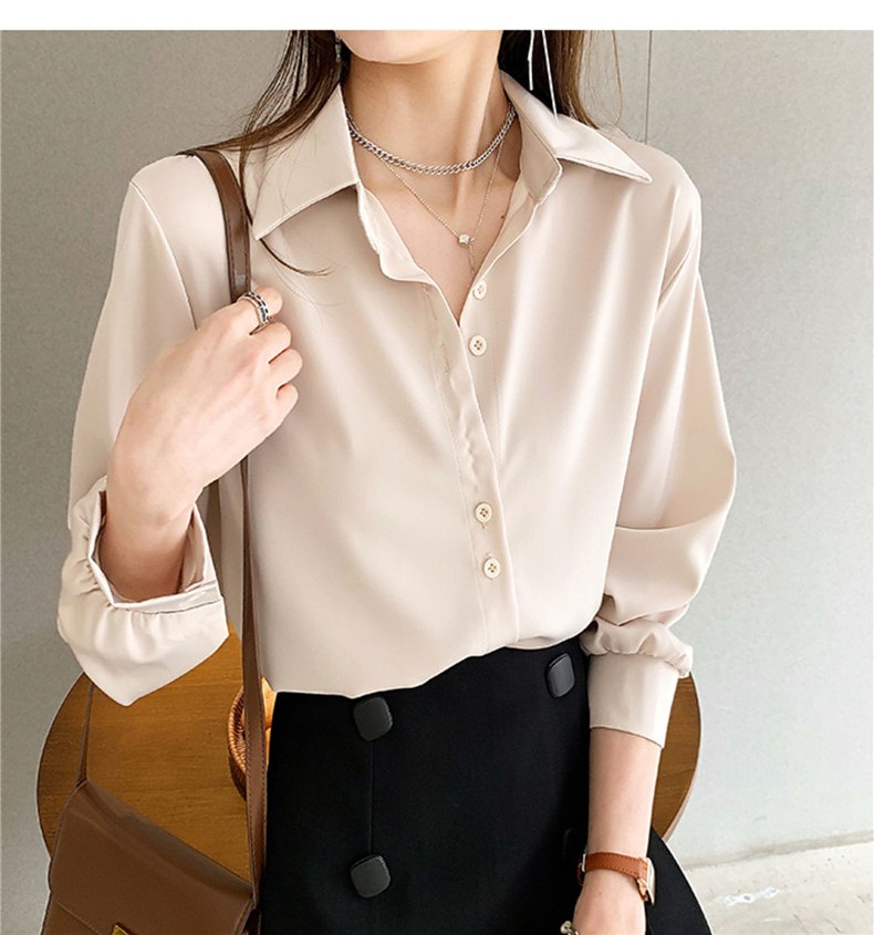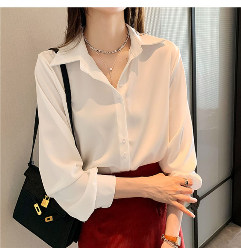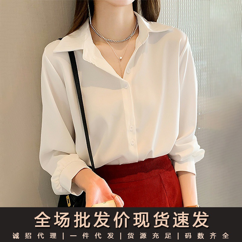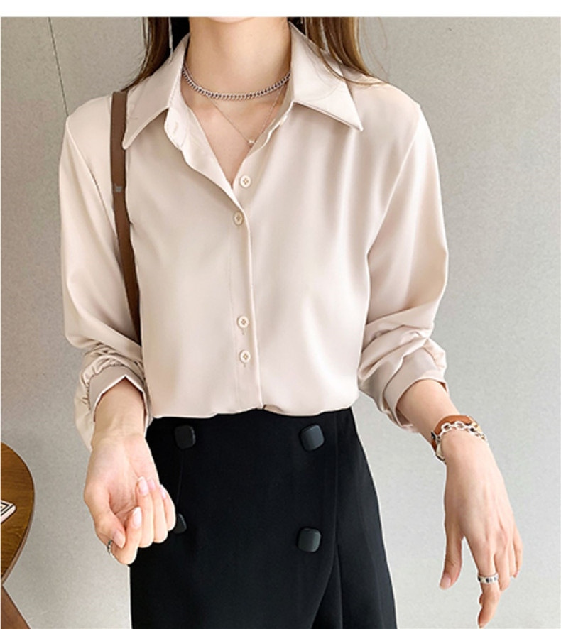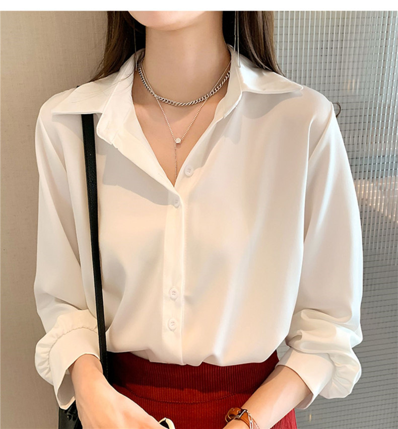 여성용 흰색 셔츠, 초가을 2025 신상 긴팔 셔츠, 디자인 센스가 돋보이는 흰색 쉬폰 탑스토어 가기