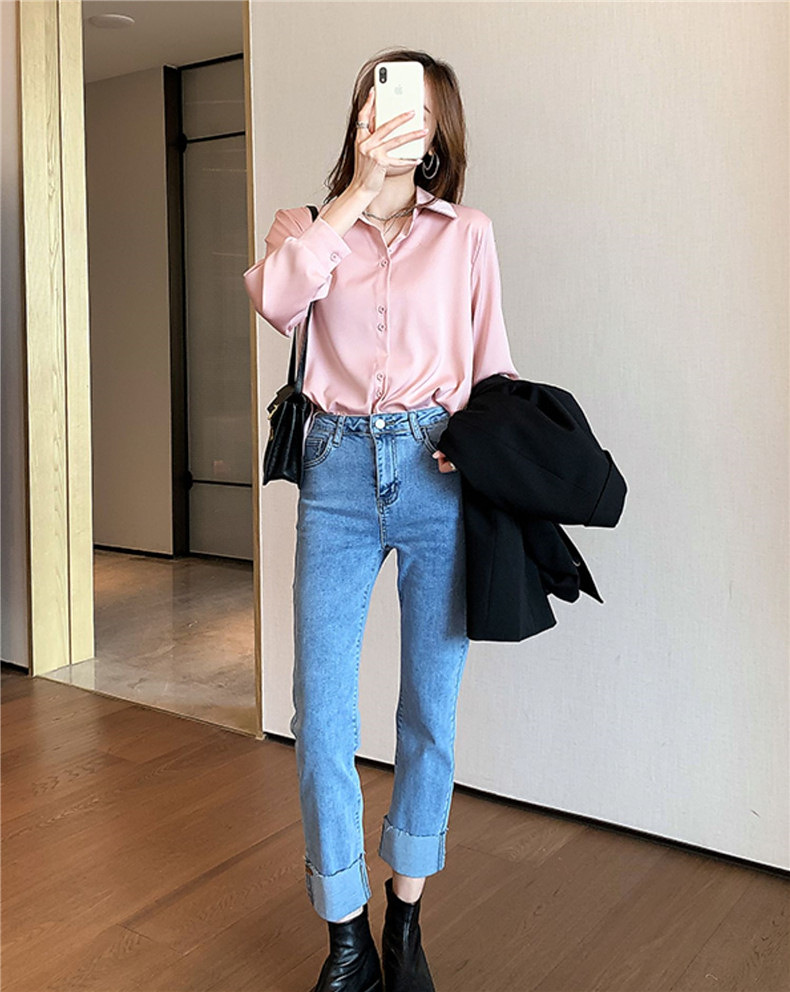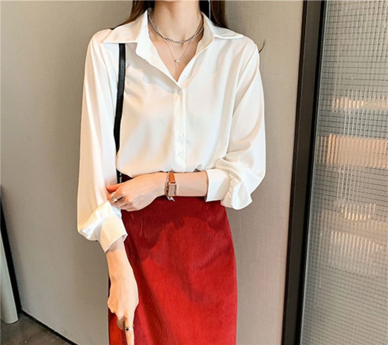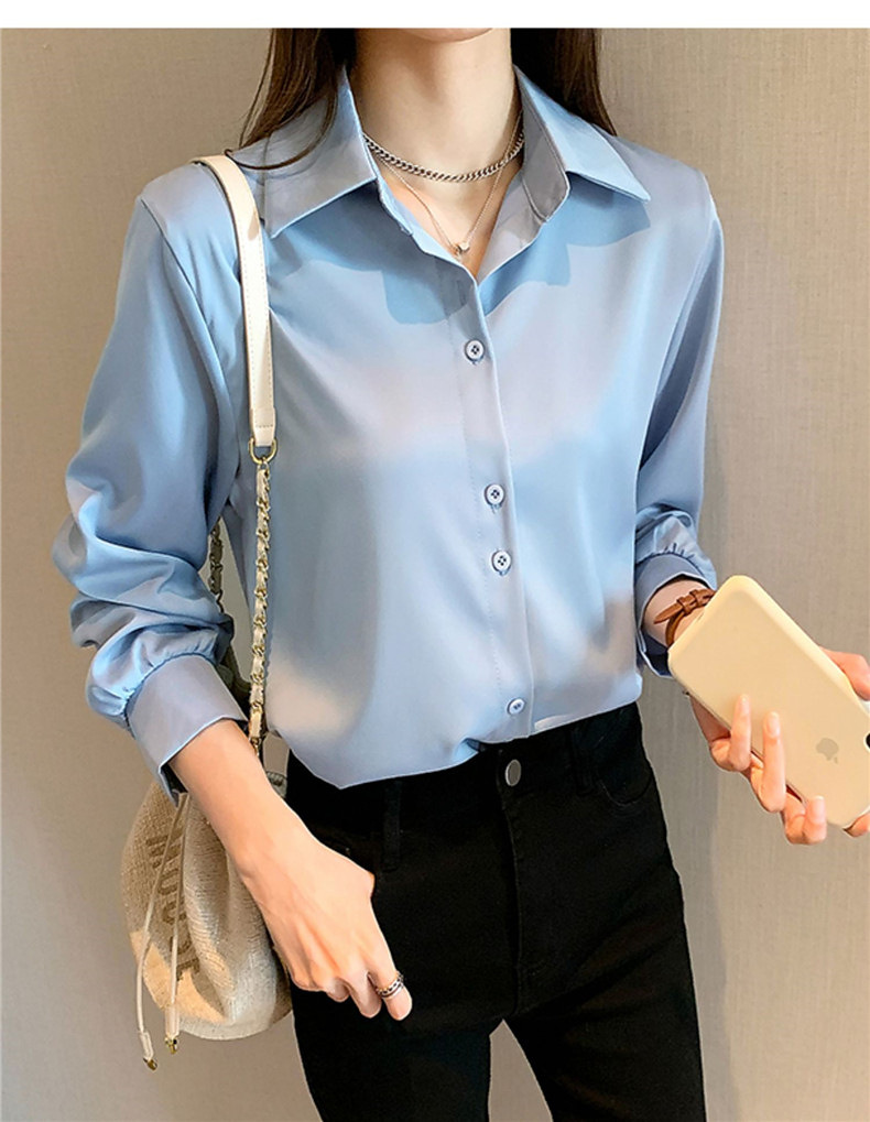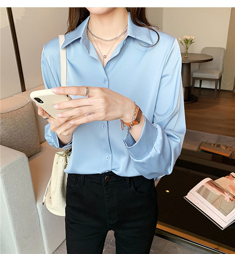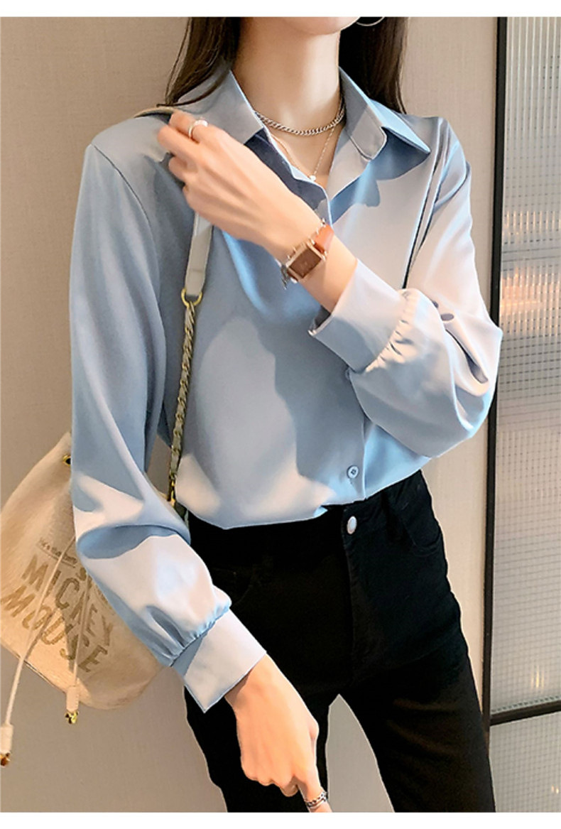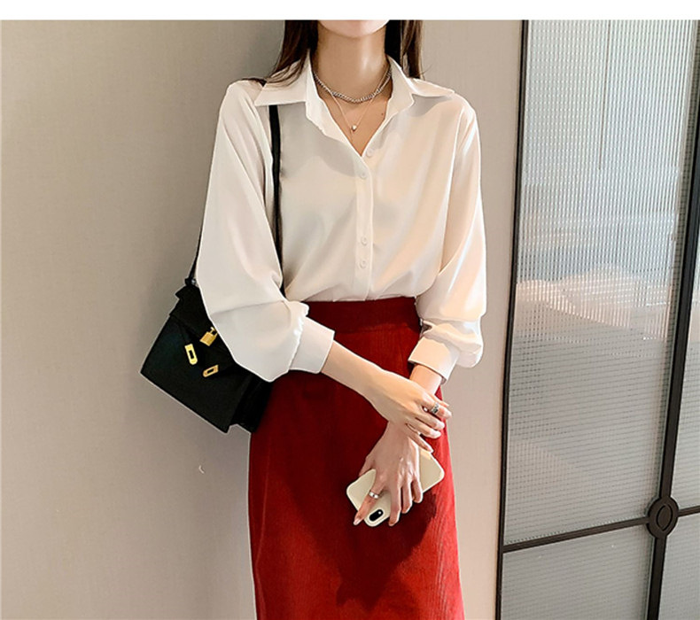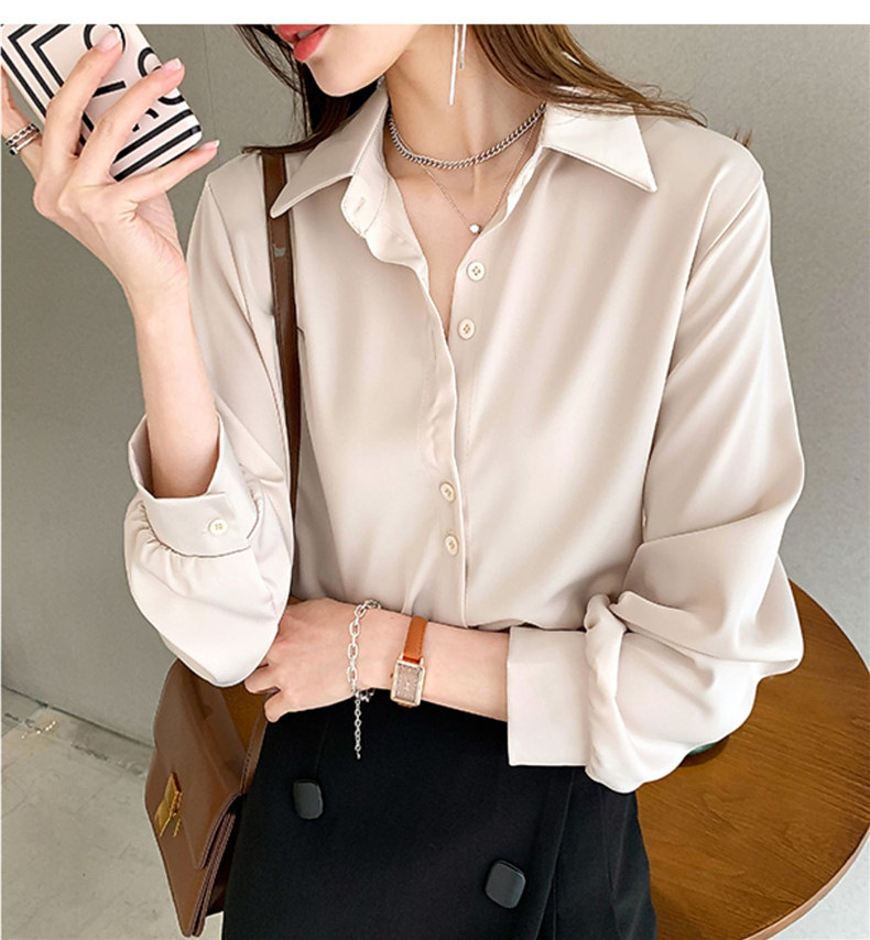 여성용 흰색 셔츠, 초가을 2025 신상 긴팔 셔츠, 디자인 센스가 돋보이는 흰색 쉬폰 탑스토어 가기