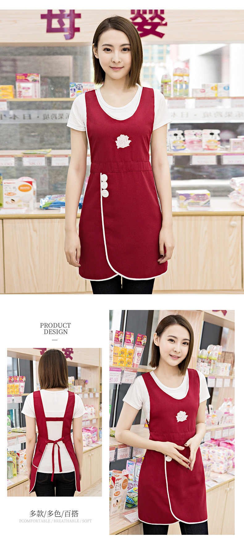 여자 앞치마 인쇄 로고 인쇄 광고 슈퍼마켓 패션 네일 아트 밀크 티 레스토랑 엄마와 아기 가게 일 꽃