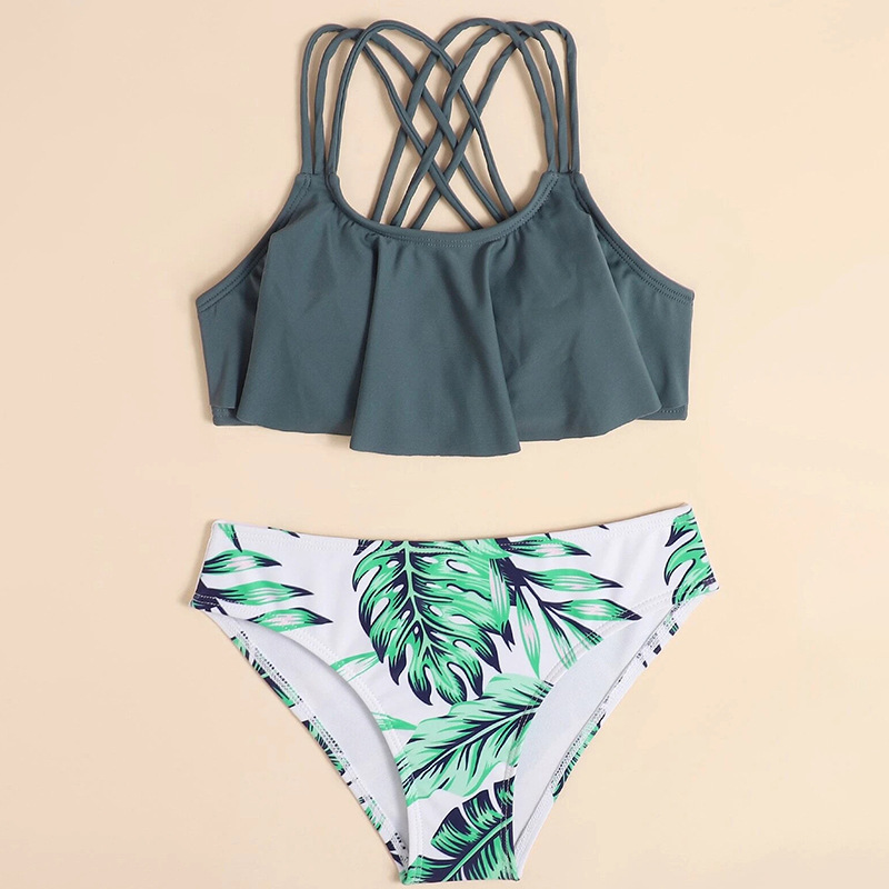 어린이용 분리형 수영복, 수영 트라이앵글 비키니, 여아용 비치 수영복, 소 무늬 나일론, 유아용 반팔