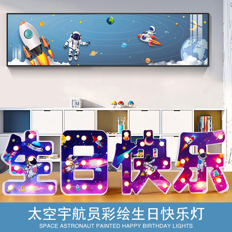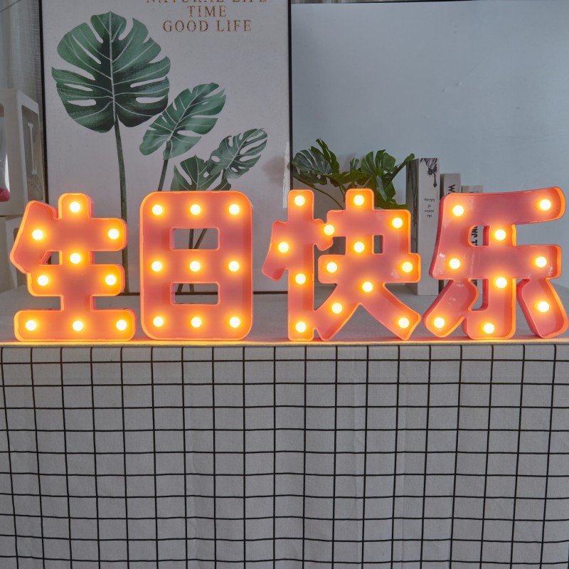 크리 에이 티브 생일 Led 빛 글꼴 빛나는 장식 파티 장면 트렁크 라이트 플레이트 장식 배열 용품스토어 가기