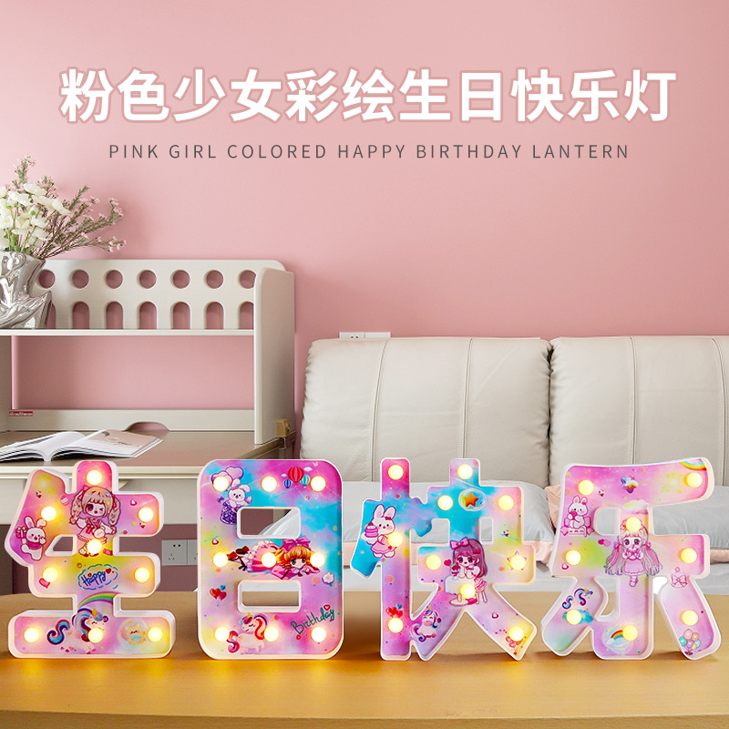 크리 에이 티브 생일 Led 빛 글꼴 빛나는 장식 파티 장면 트렁크 라이트 플레이트 장식 배열 용품
