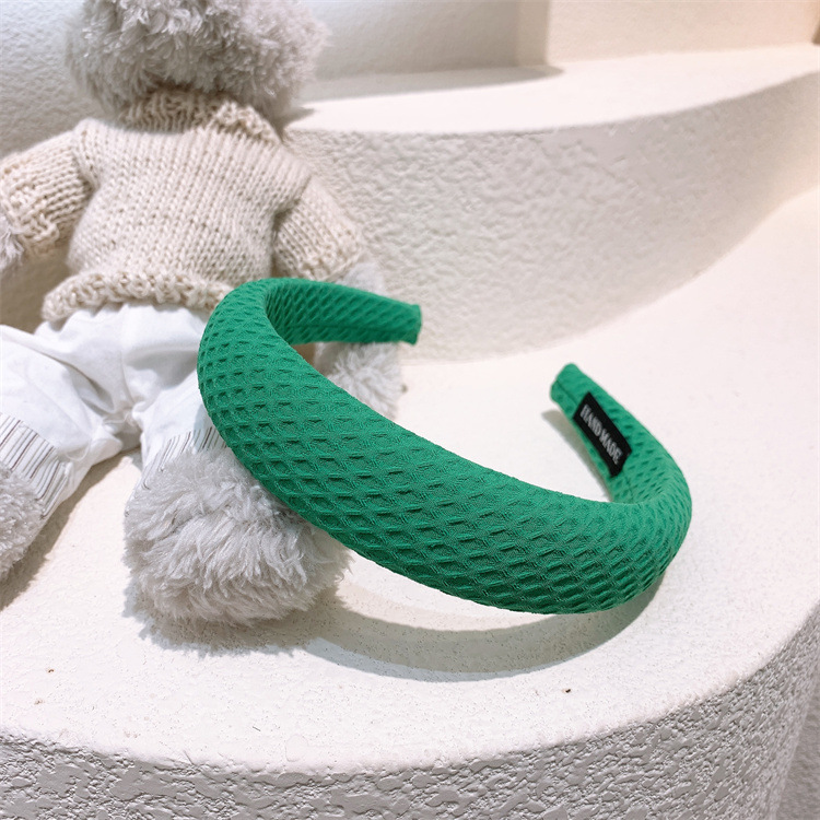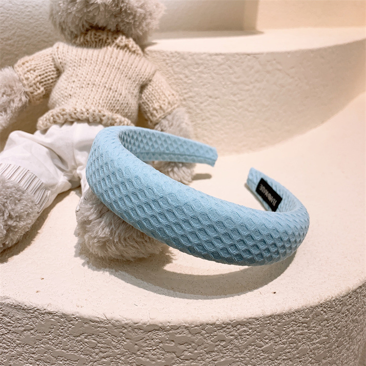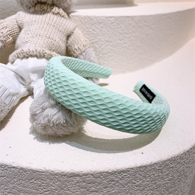 한국 스타일 크림 컬러 격자 무늬 헤어 후프 소녀 달콤한 스폰지 헤어 후프 인터넷 연예인 외출 단색 헤어 스탬프 워시 헤드 버클