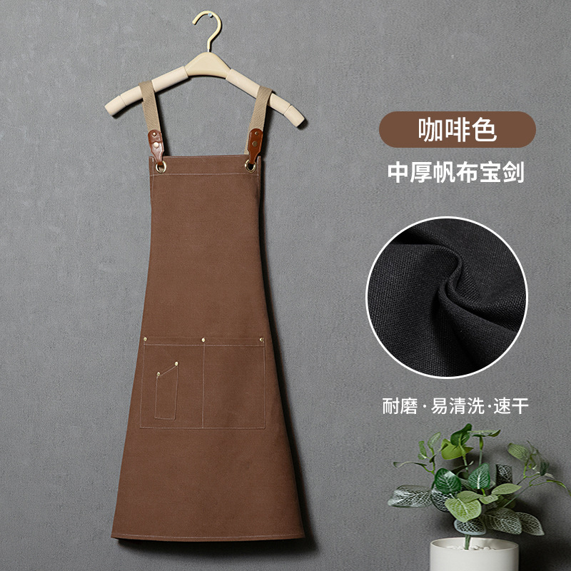 두꺼운 캔버스 앞치마 로고 인쇄 플로럴 네일 아트 호텔 케이터링 스페셜 밀크 티 숍 웨이터 작업복
