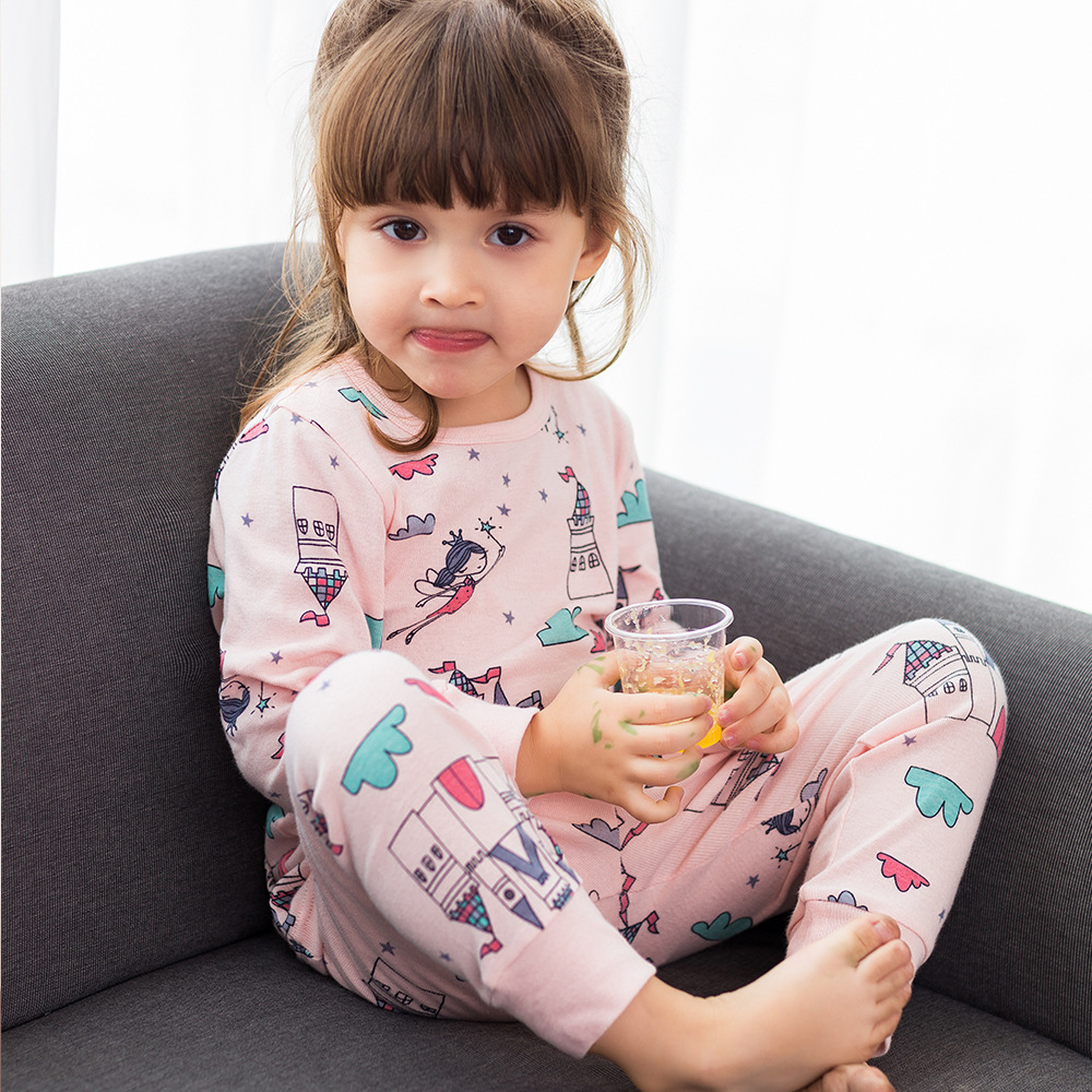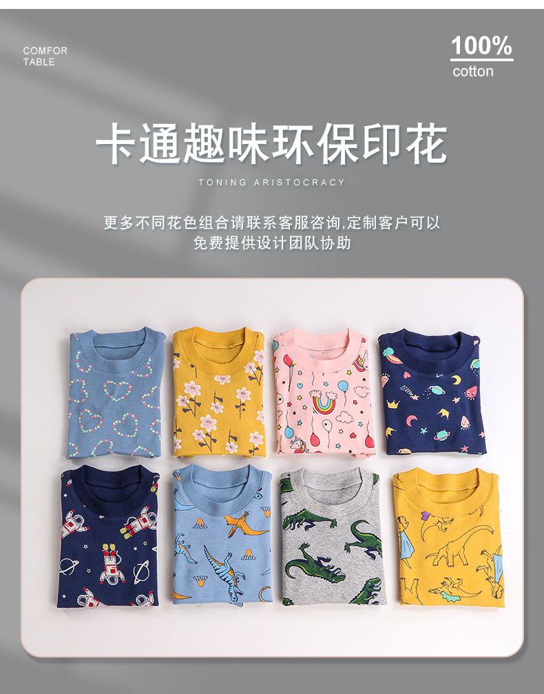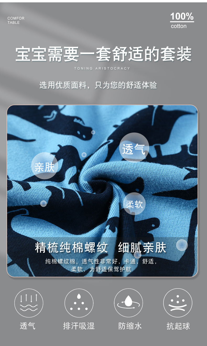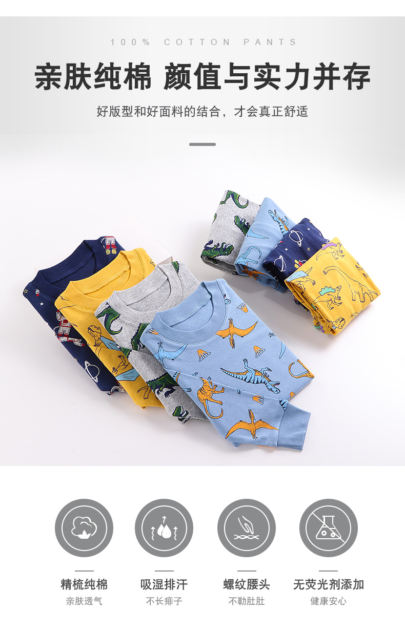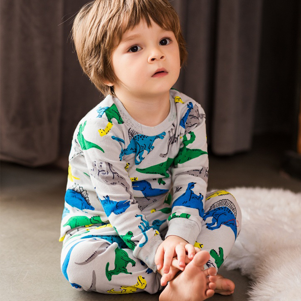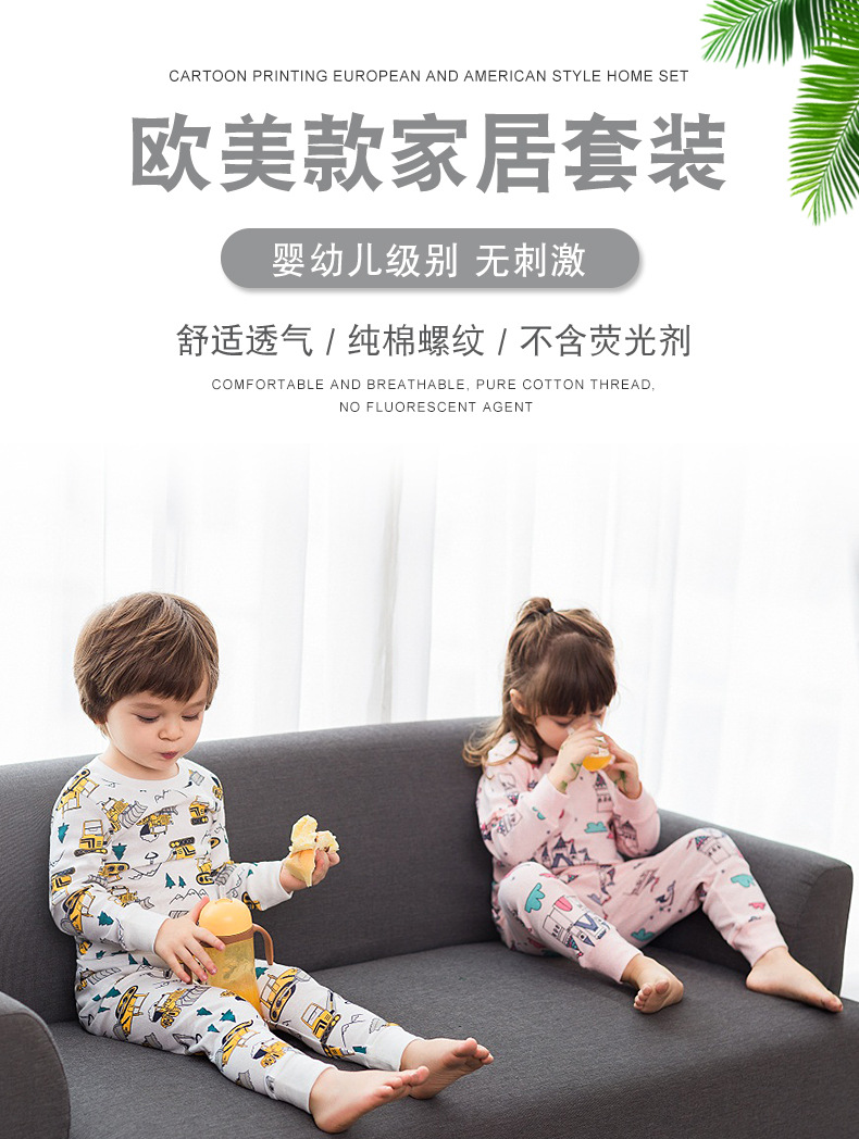아동복, 유럽 및 미국 아동 가정복, 여아 속옷 세트, 순면 만화 공룡 남아 잠옷, 국경 간 도매