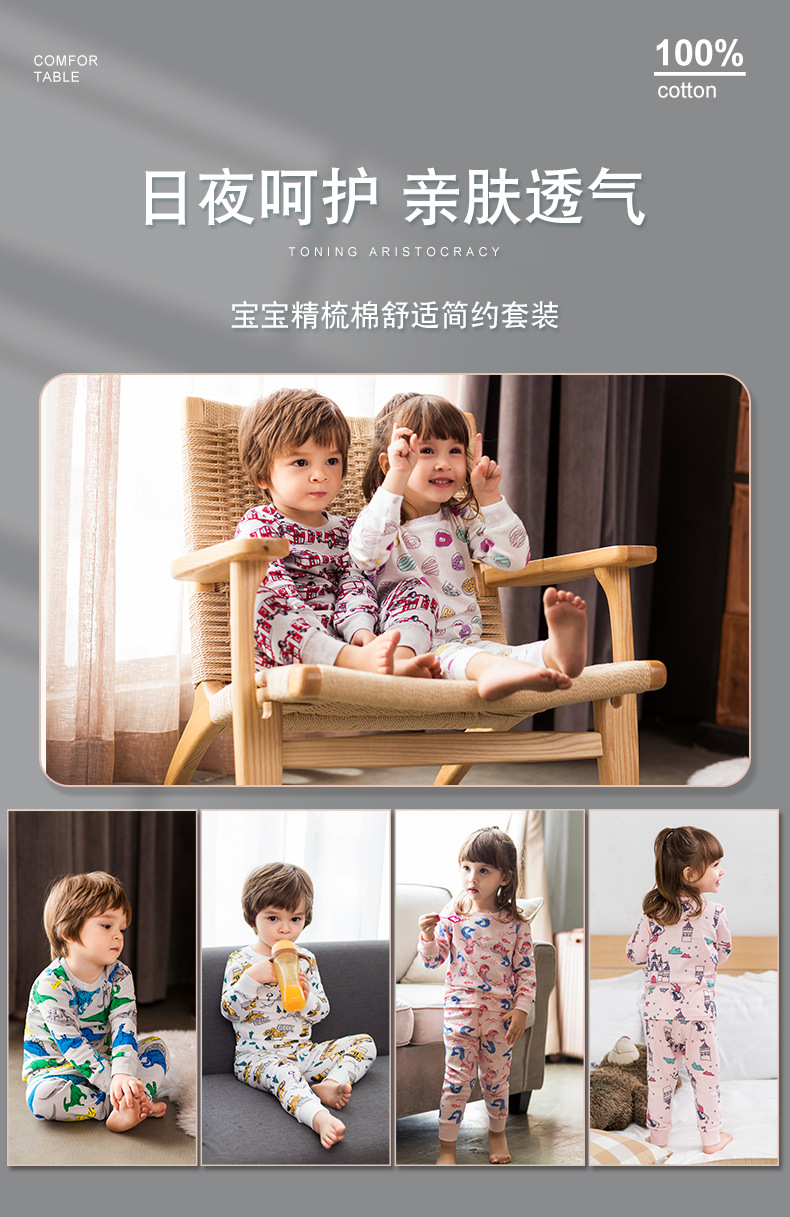 아동복, 유럽 및 미국 아동 가정복, 여아 속옷 세트, 순면 만화 공룡 남아 잠옷, 국경 간 도매스토어 가기