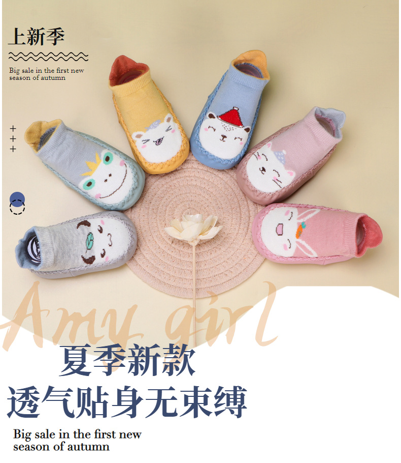 봄과 가을 아기 바닥 양말 실내 시원한 미끄럼 방지 어린이 유아 신발 아기 부드러운 바닥 신발 짧은 튜브 느슨한 양말