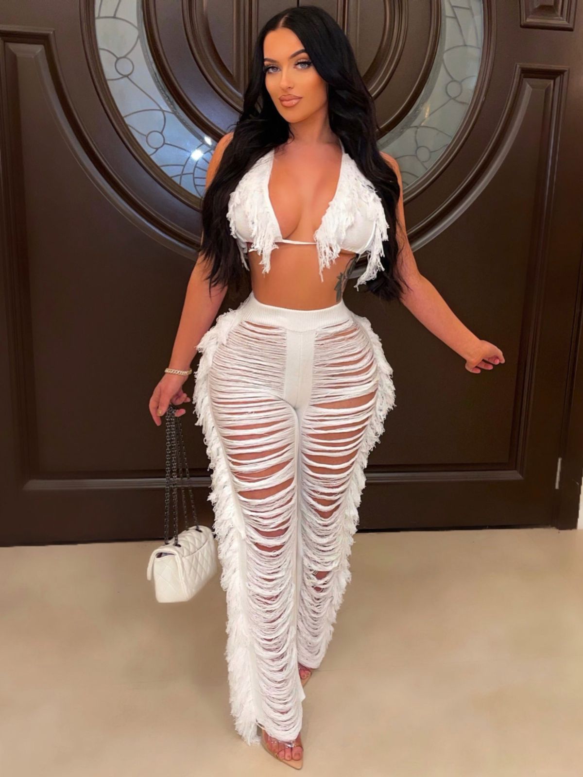 소스 공장 2022 여름 새로운 유럽과 미국 여성의 섹시한 술 니트 바지 세트