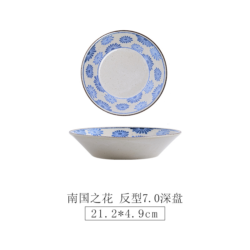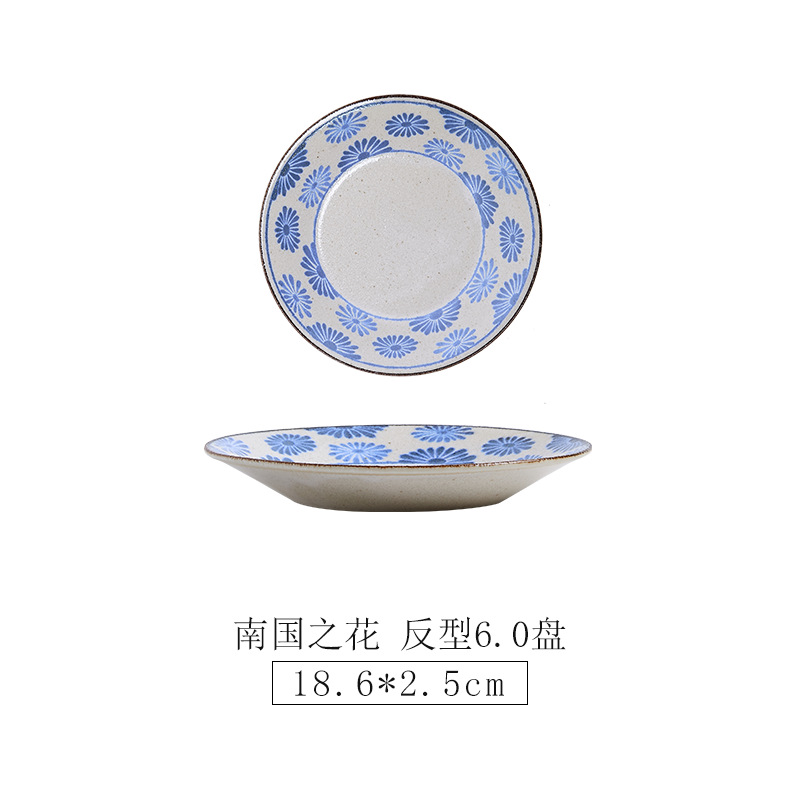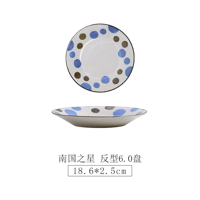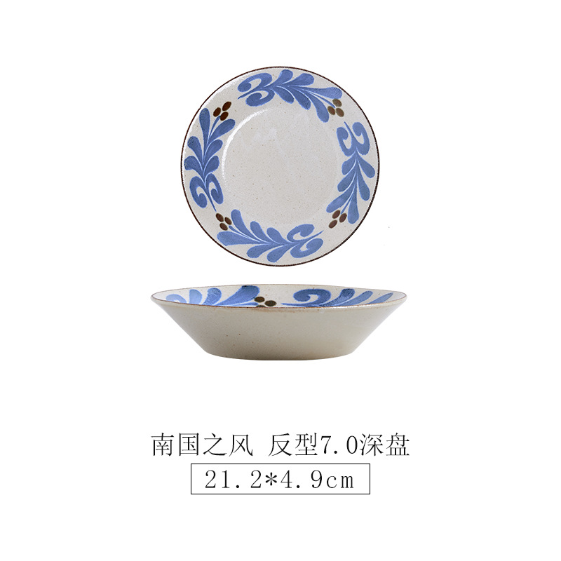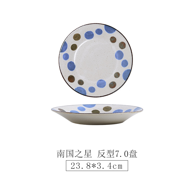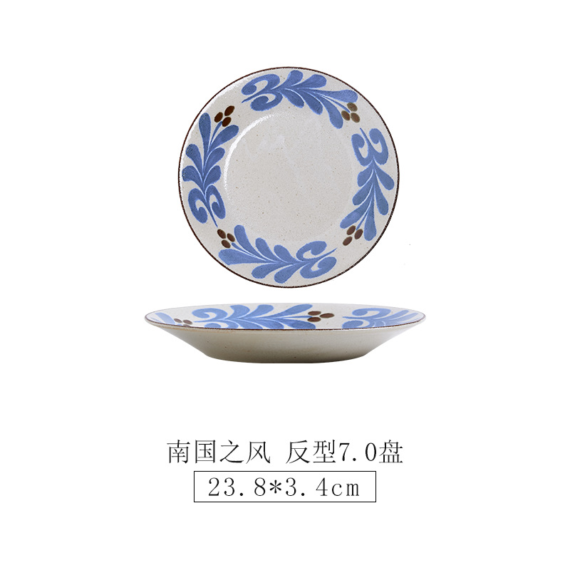 일본 식기 도자기 접시 가정용 일본식 원형 접시 유약 밑색 남풍 시리즈 접시 국수 접시