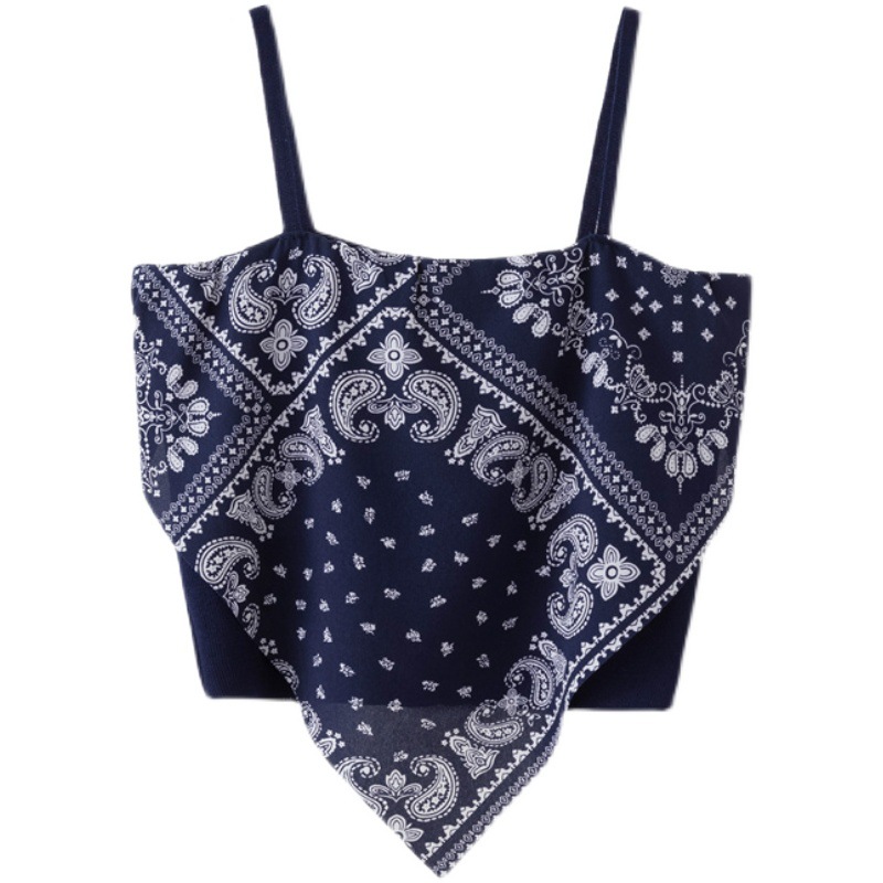에스닉 스타일 캐슈 꽃 슬링 튜브 탑 가짜 2 조각 얼음 실크 슬링 조끼 원활한 인쇄 패션 그물 적외선 착용 여성