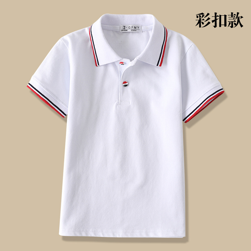 여름 남학생 반팔 폴로 셔츠 초등학교 교복 중대형 어린이 흰색 옷깃 티셔츠 여자 졸업식 수업 옷