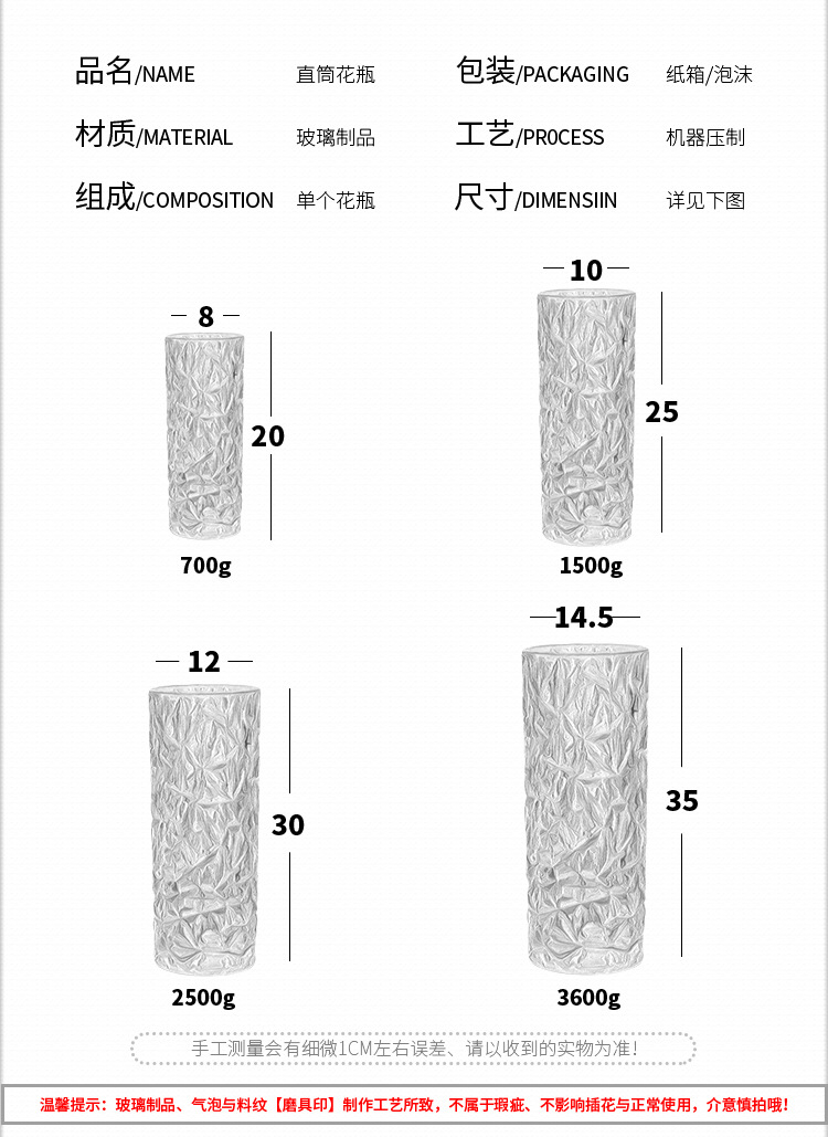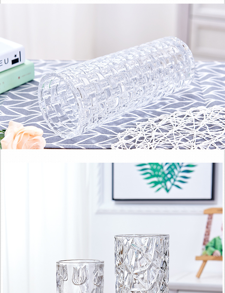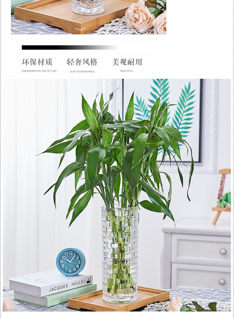 두꺼운 꽃병 유리 투명 물 영양 대나무 장미 백합 말린 꽃 장식품 대형 거실 북유럽 스타일 병