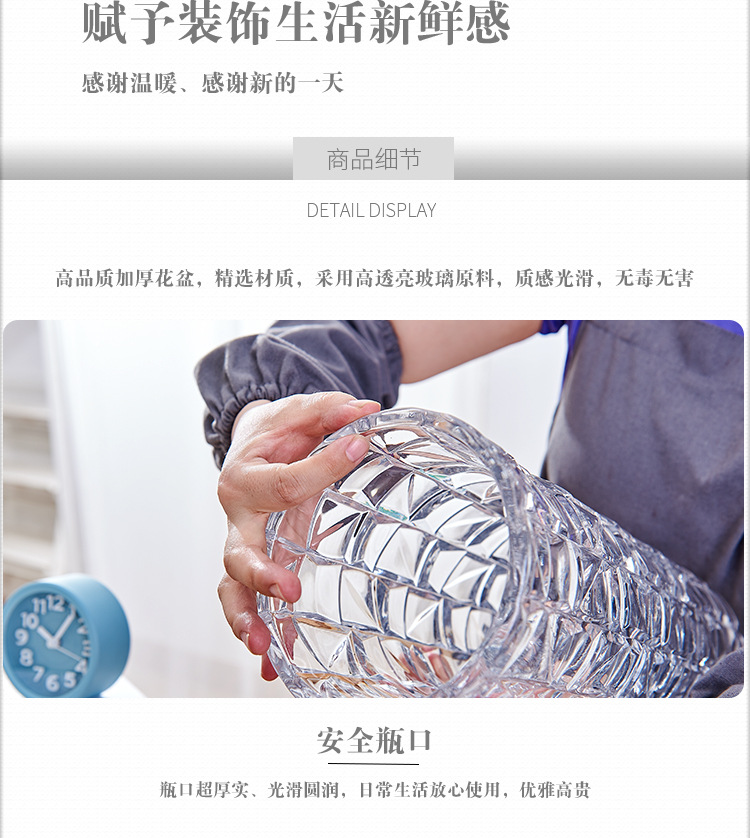 두꺼운 꽃병 유리 투명 물 영양 대나무 장미 백합 말린 꽃 장식품 대형 거실 북유럽 스타일 병스토어 가기