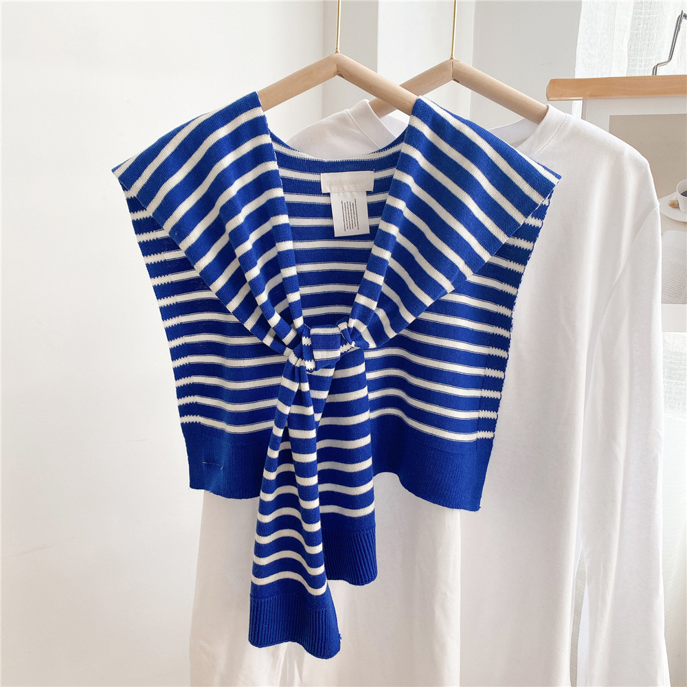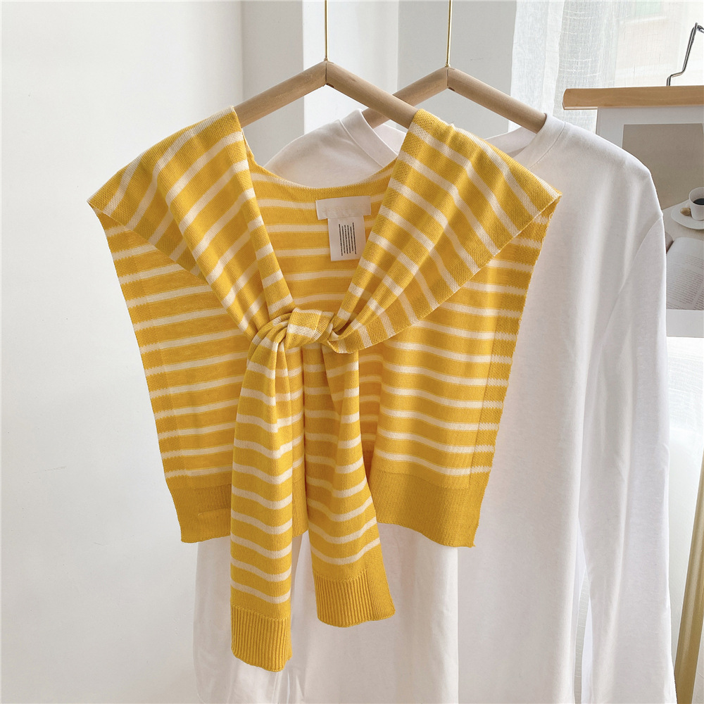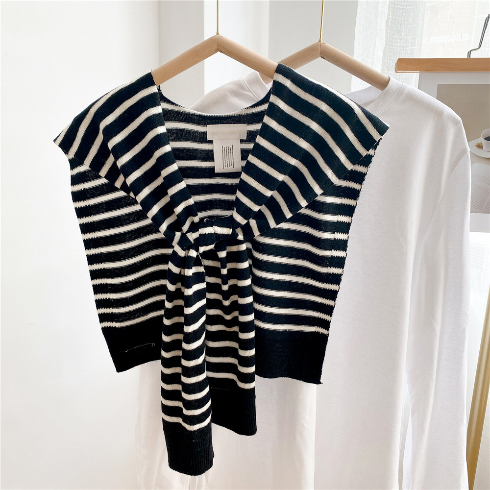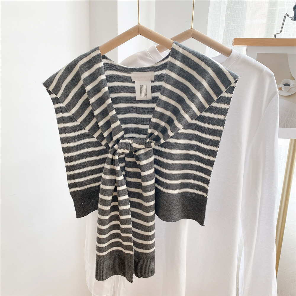 새로운 스타일 스트라이프 아우터 숄 여성용 봄과 가을 모든 매치 거짓 칼라 장식 양복 조끼 에어컨 룸 숄더 패션 스카프