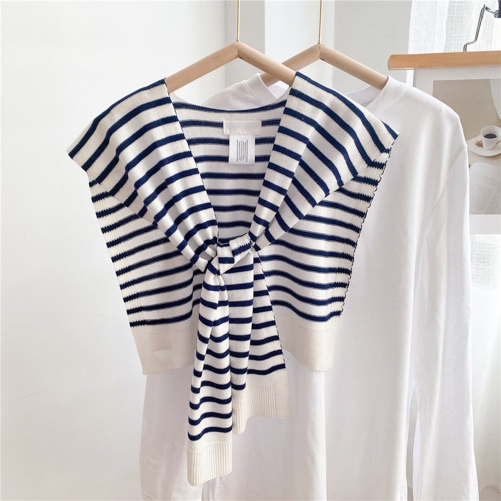 새로운 스타일 스트라이프 아우터 숄 여성용 봄과 가을 모든 매치 거짓 칼라 장식 양복 조끼 에어컨 룸 숄더 패션 스카프스토어 가기