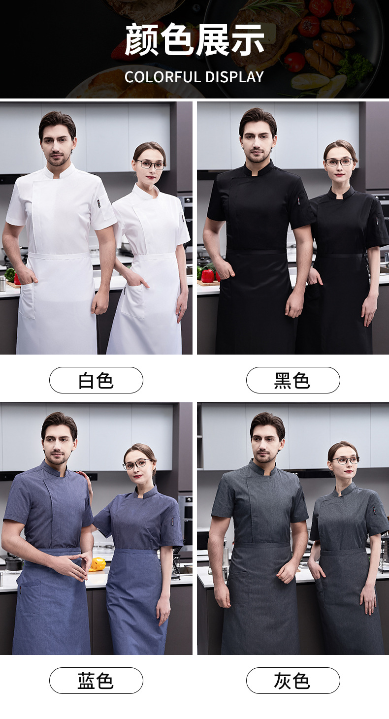 호텔 요리사 작업복 남성용 반팔 고급 취사 주방 요리사 작업복 여름 얇은 통기성 땀 흡수스토어 가기