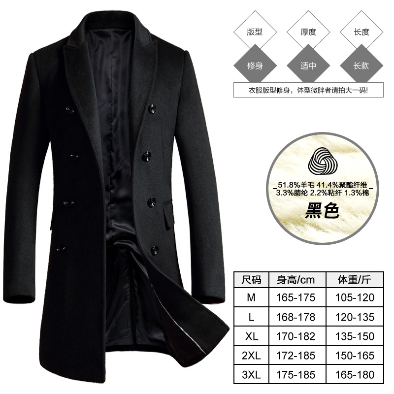크로스 보더 2022 새로운 남성 중간 길이 모직 코트 남성 가을과 겨울 영국 더블 브레스트 캐주얼 울 코트 남성스토어 가기