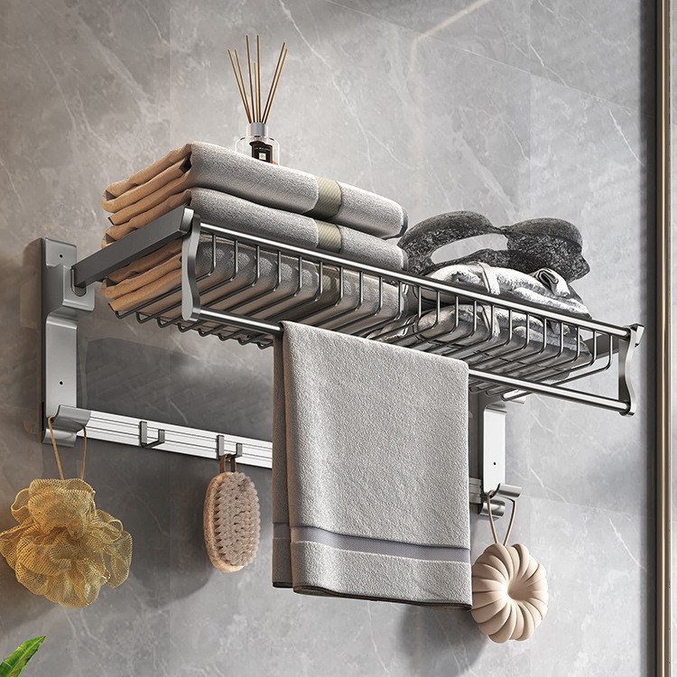 • 알루미늄 타월 랙 바스켓 건 그레이 50cm (구멍 뚫린 손톱 없는 이중 사용)