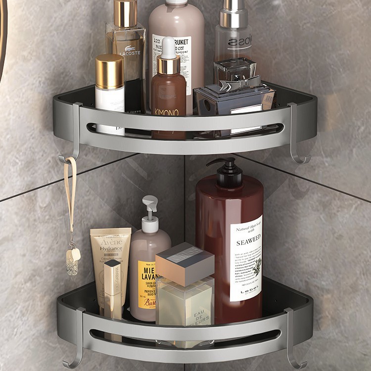 • 후크가있는 알루미늄 삼각형 바구니-2 층 건 그레이 (구멍이 뚫린 손톱이없는 이중 사용)