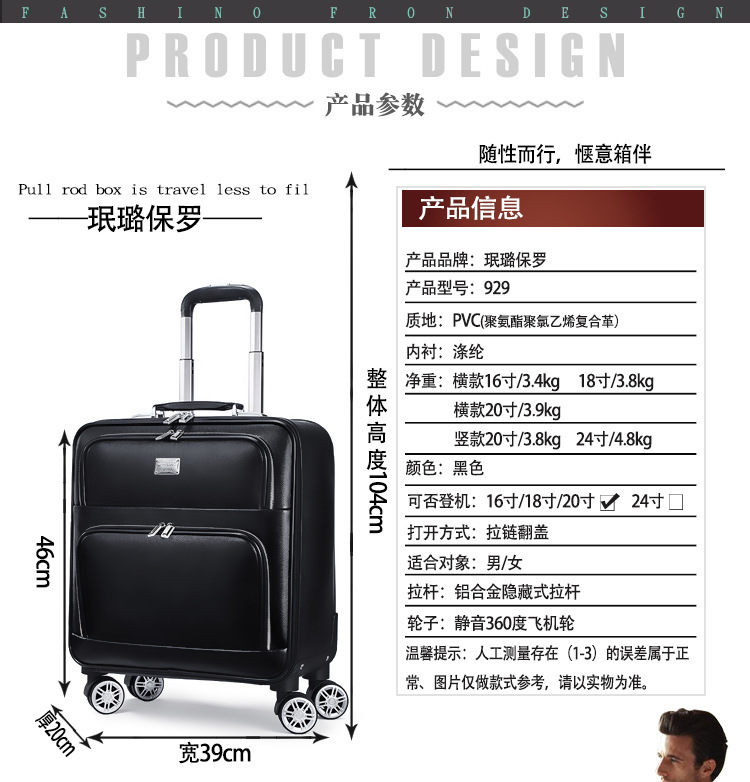 가죽 여행가방 비즈니스 기내용 비밀번호 가방 24inch 여행가방 남성용 트롤리 가방 20inch 휴대용스토어 가기