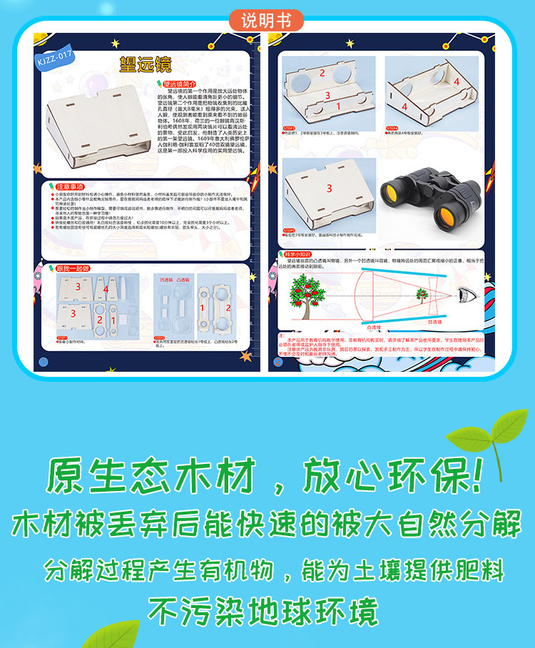어린이 교육 과학 기술 작은 만들기 DIY 망원경 수제 자체 제작 과학 실험 발명 교육 과학 및 교육 완구스토어 가기