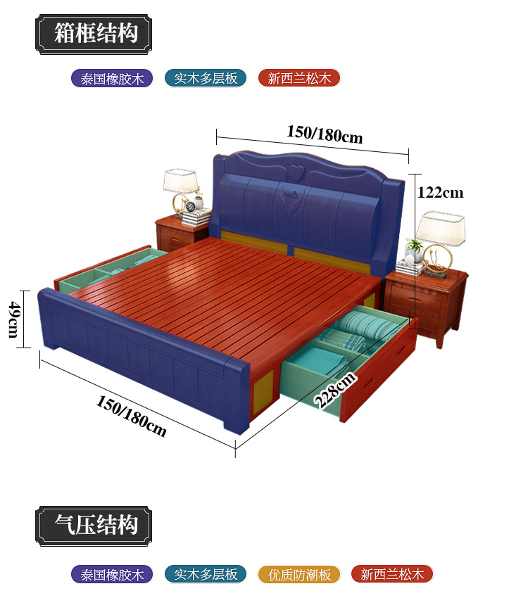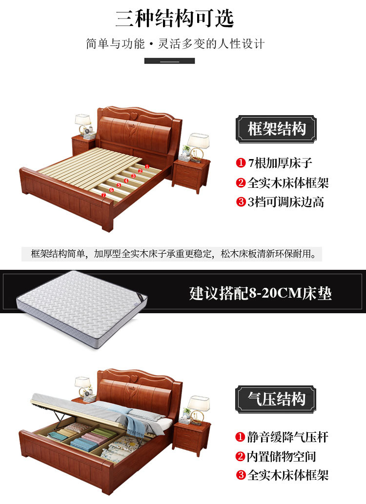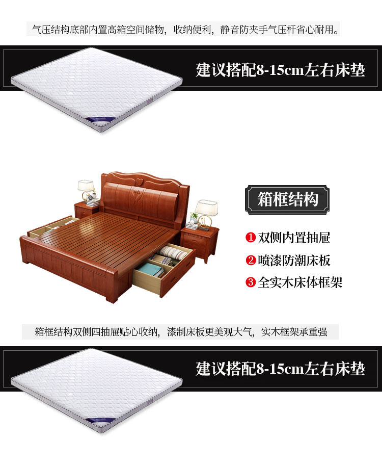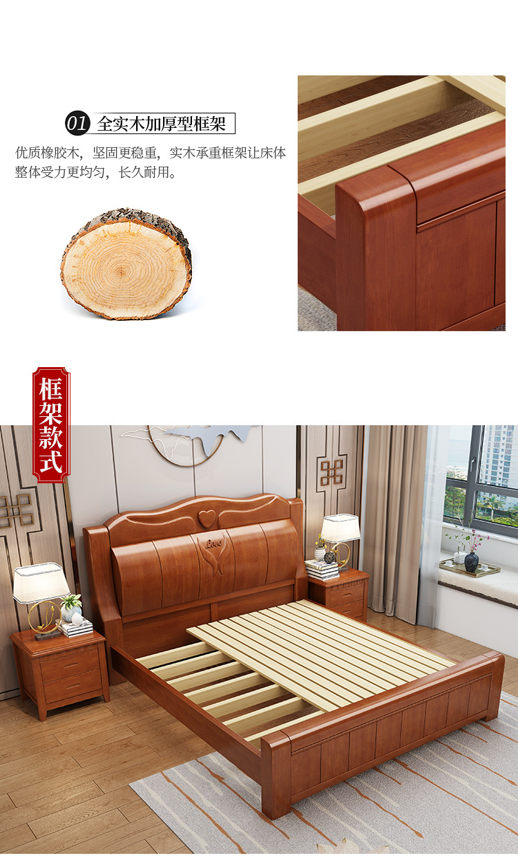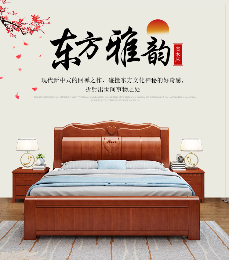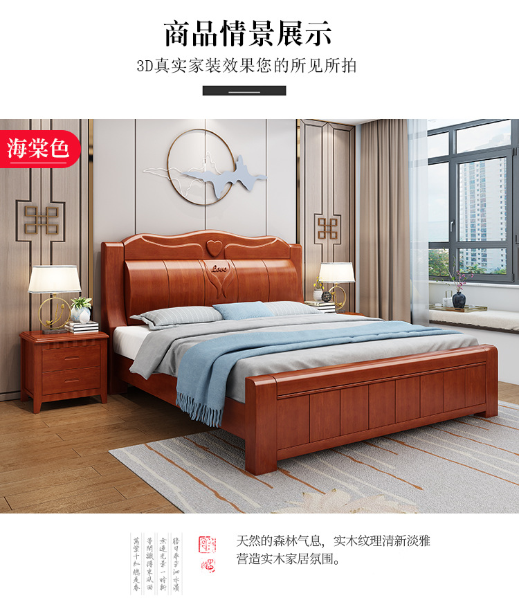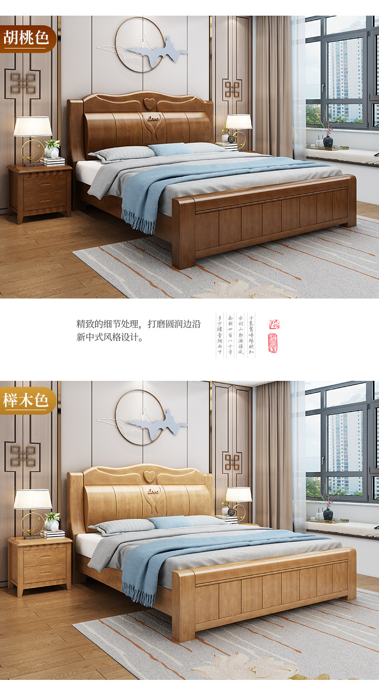 중국 단단한 나무 침대 두껍게 1.8 미터 새로운 마스터 침실 경제 더블 침대 대형 난강 홍환 가구 공장 콘센트스토어 가기