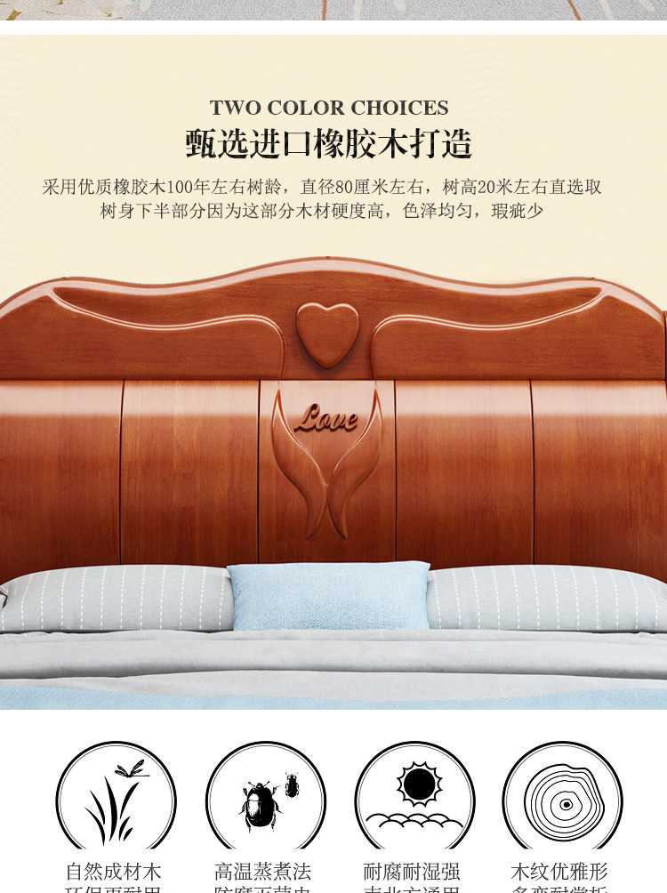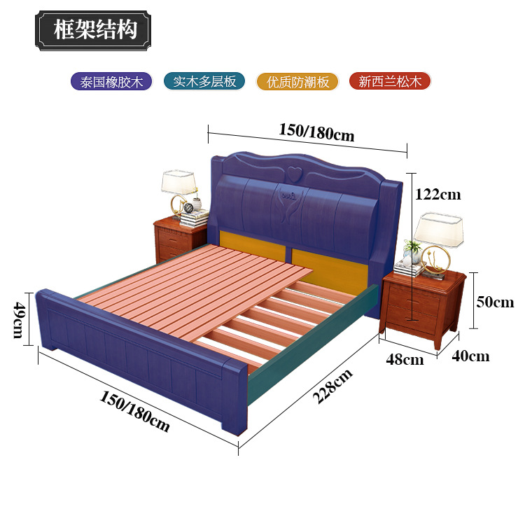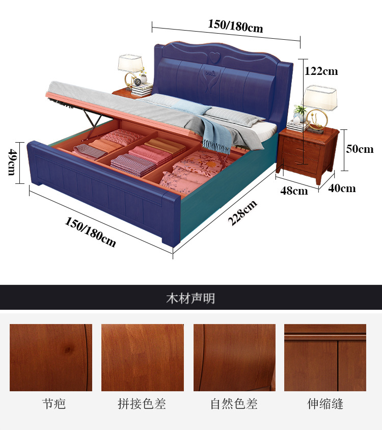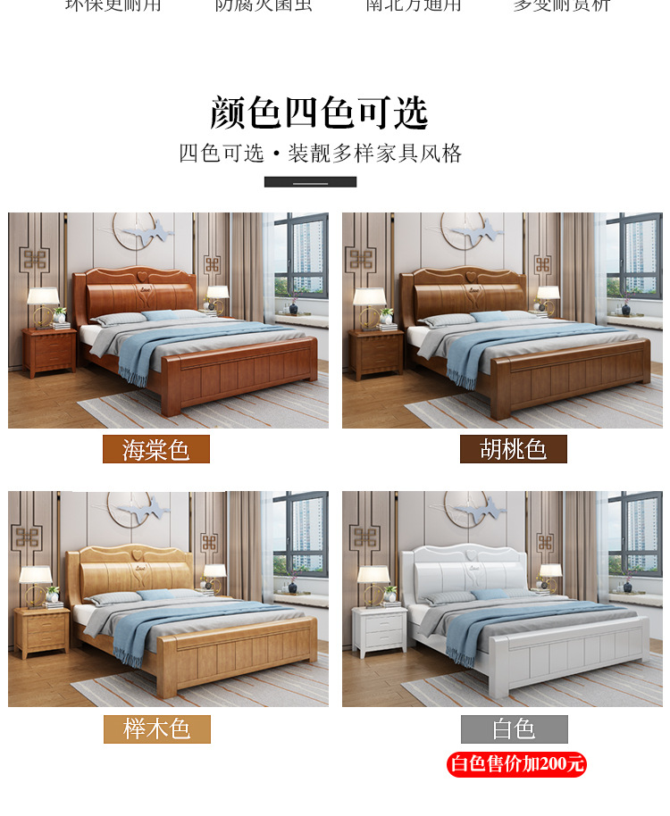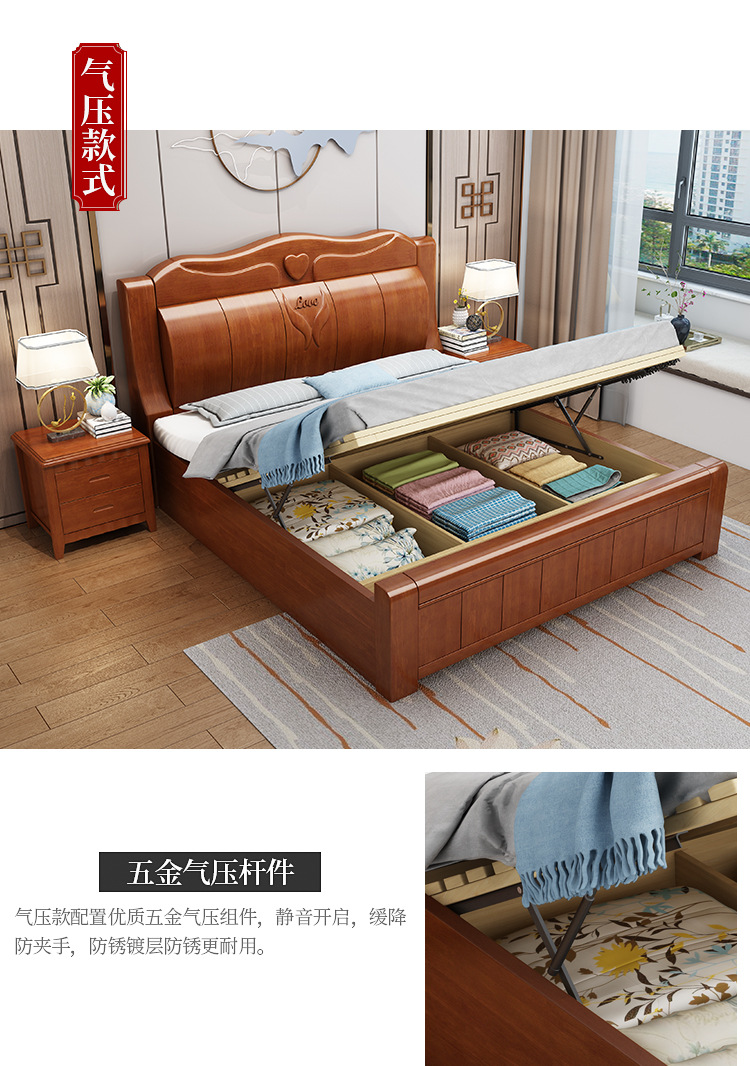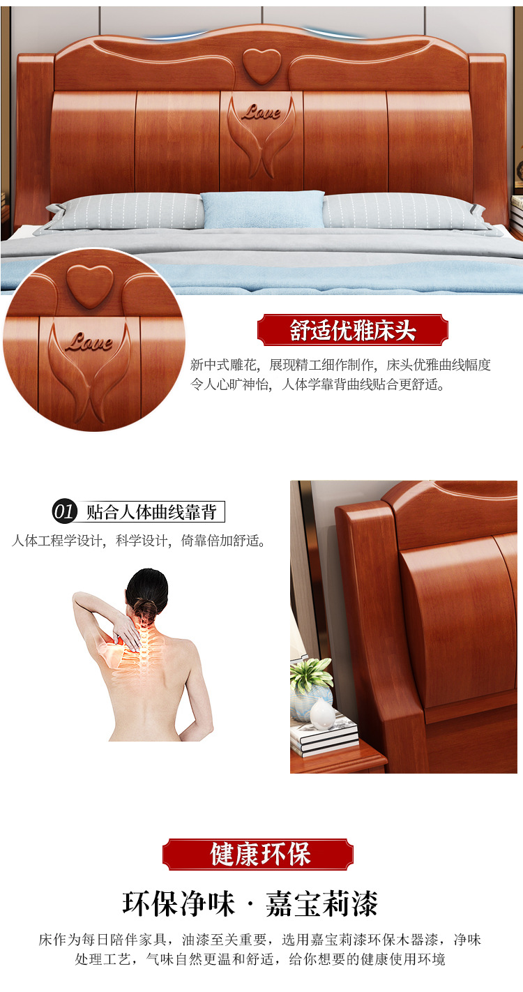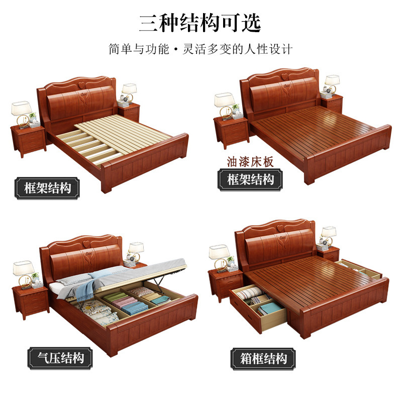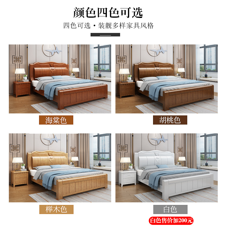 중국 단단한 나무 침대 두껍게 1.8 미터 새로운 마스터 침실 경제 더블 침대 대형 난강 홍환 가구 공장 콘센트