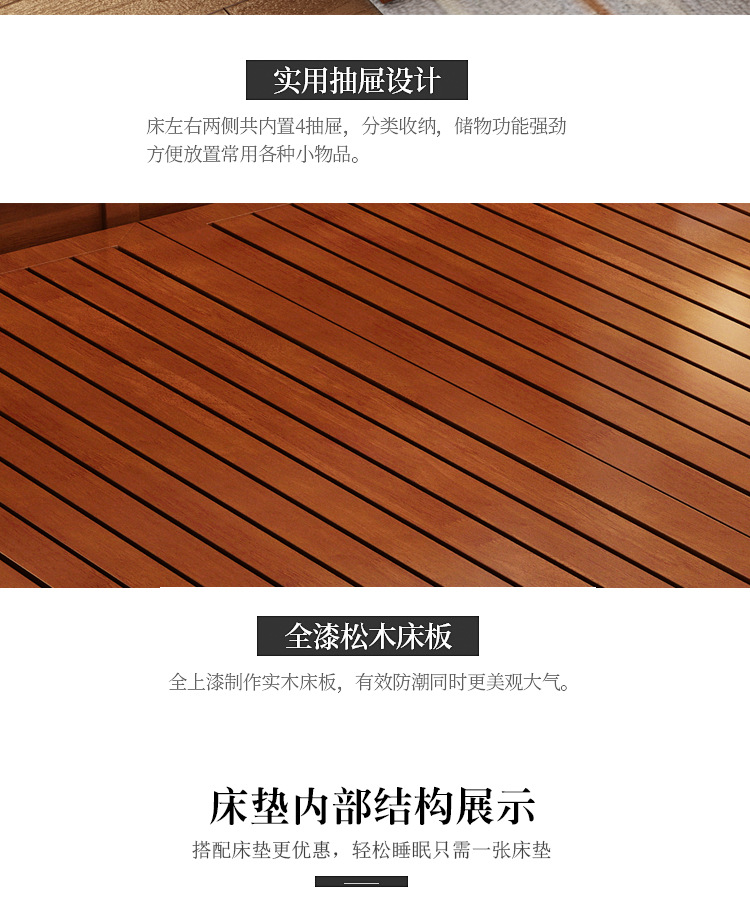 • [두꺼운 모델] 원목 침대 + 침대 옆 테이블 * 1 + 20 스프링 라텍스 매트리스