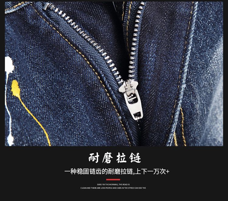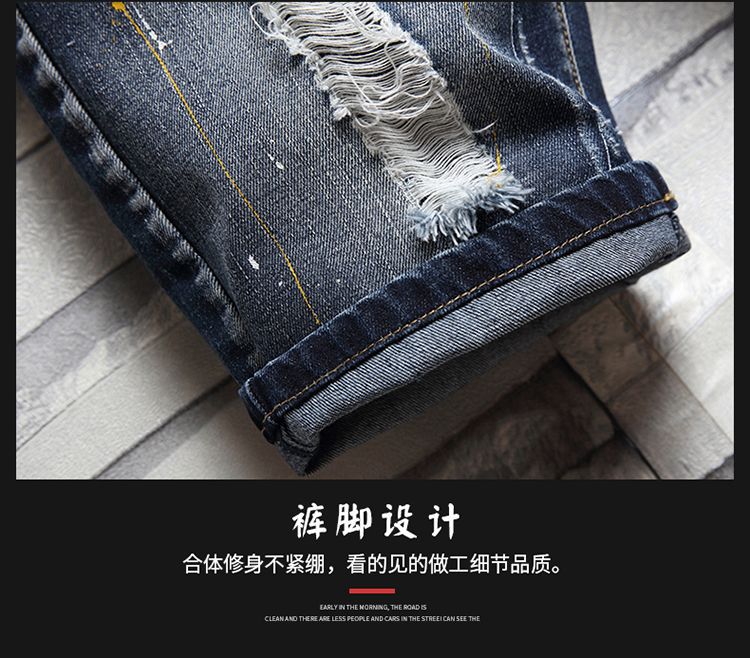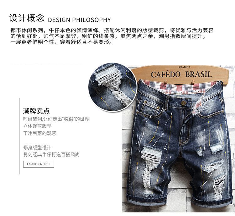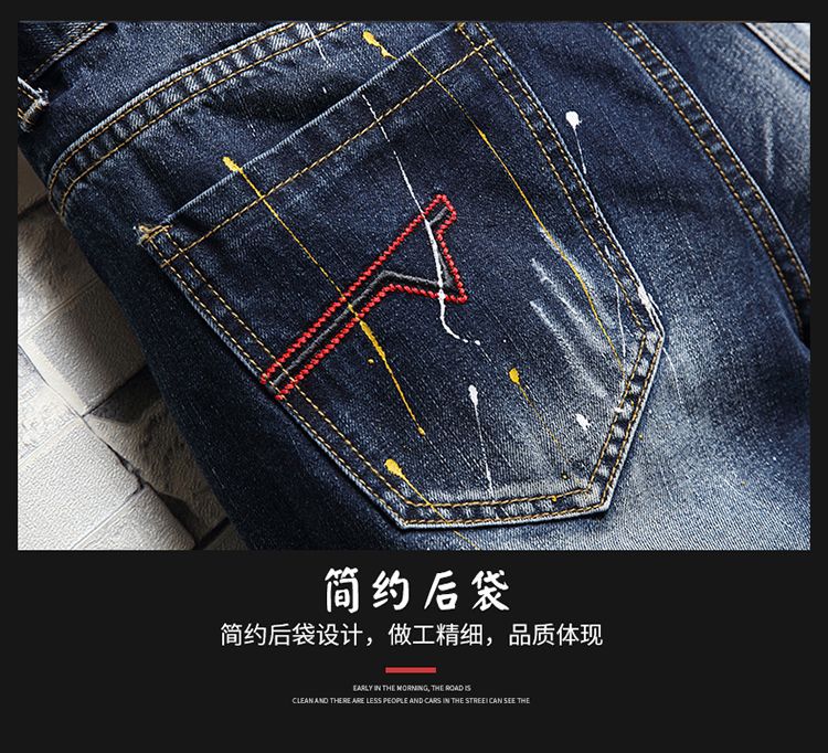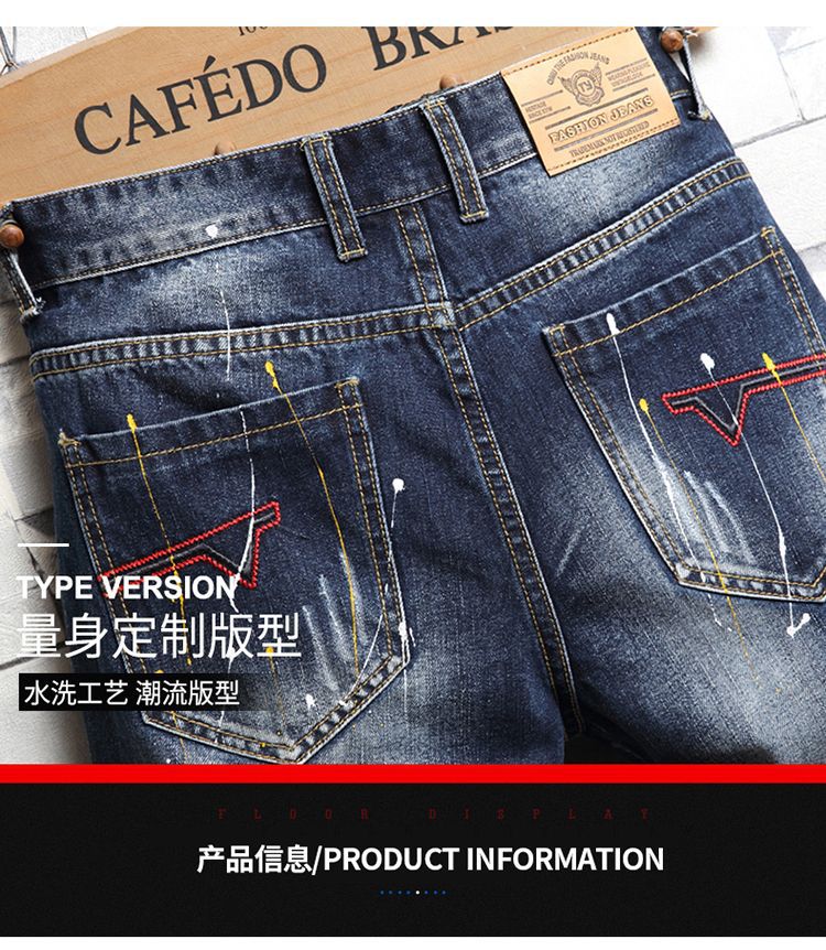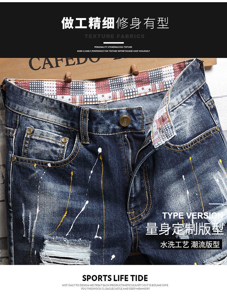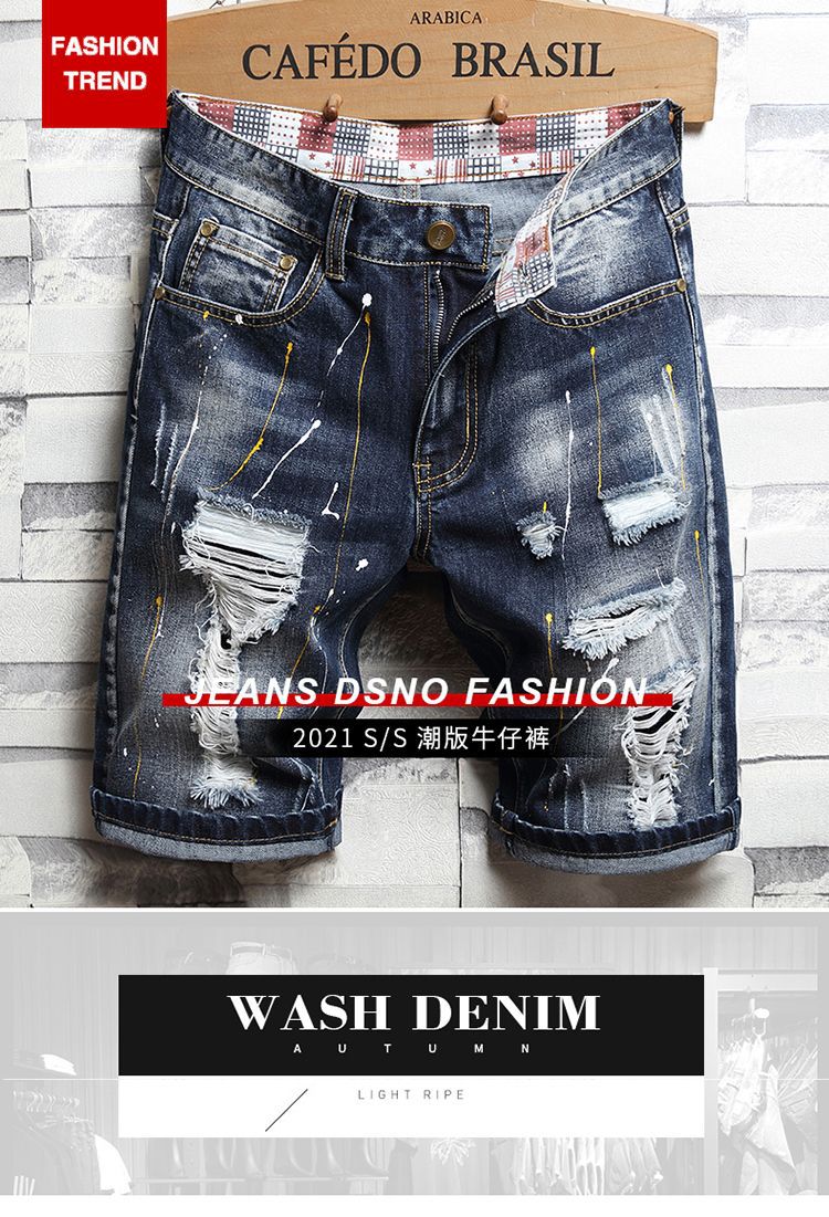 트렌디 브랜드 스티칭 낙서 데님 반바지 남성용 해외 무역 AliExpress 스트레치 5 점 중간 길이 바지 패션 트렌디 패션 반바지스토어 가기
