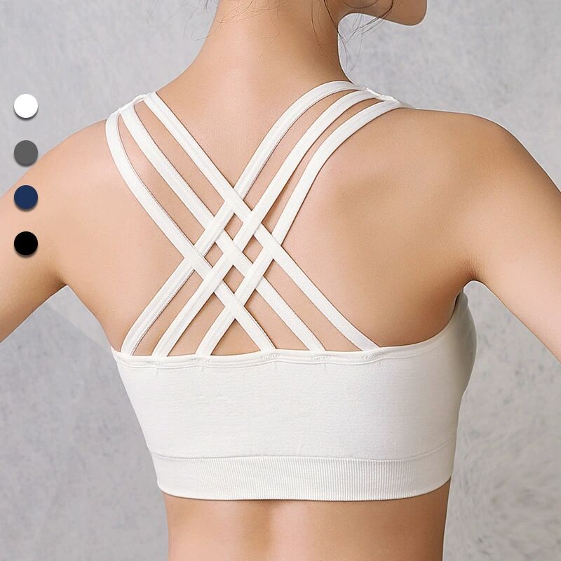 체육관 스포츠 속옷 여성의 아름다운 등 요가 크로스 캐미솔 충격 방지 러닝 개더 모양의 브래지어 속건