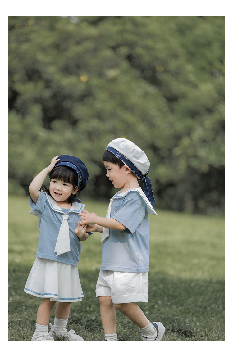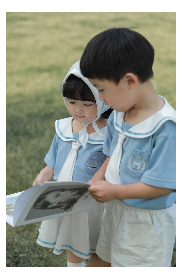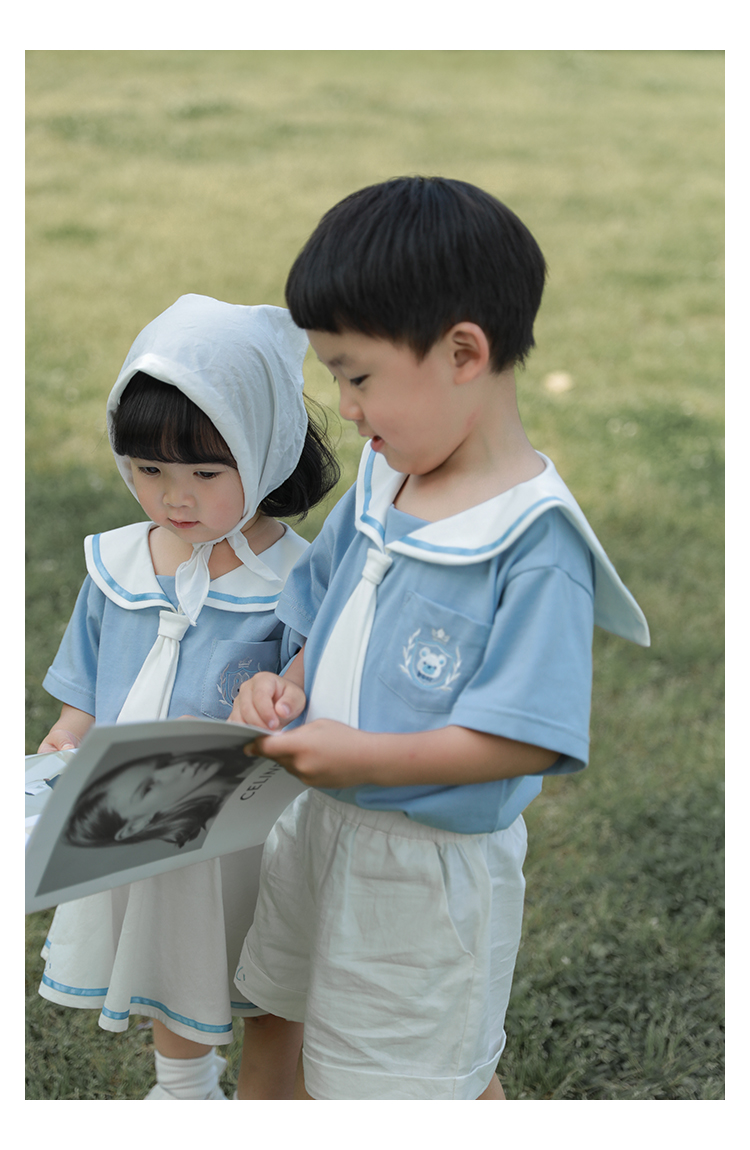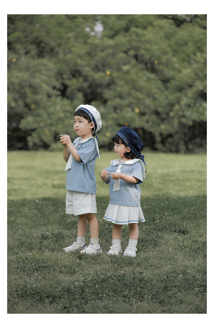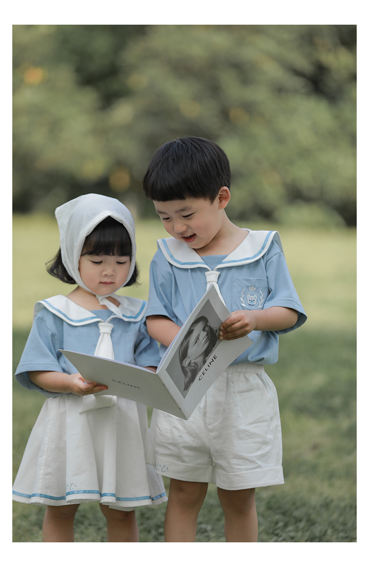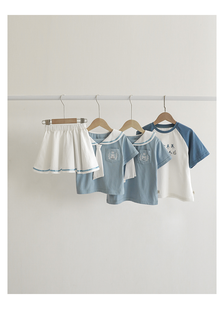 내 갈비뼈 형제와 자매 원피스 아카데미 스타일 세트 소년의 승무원 칼라 반팔 티셔츠 바지 아기 소녀 얇은 치마스토어 가기